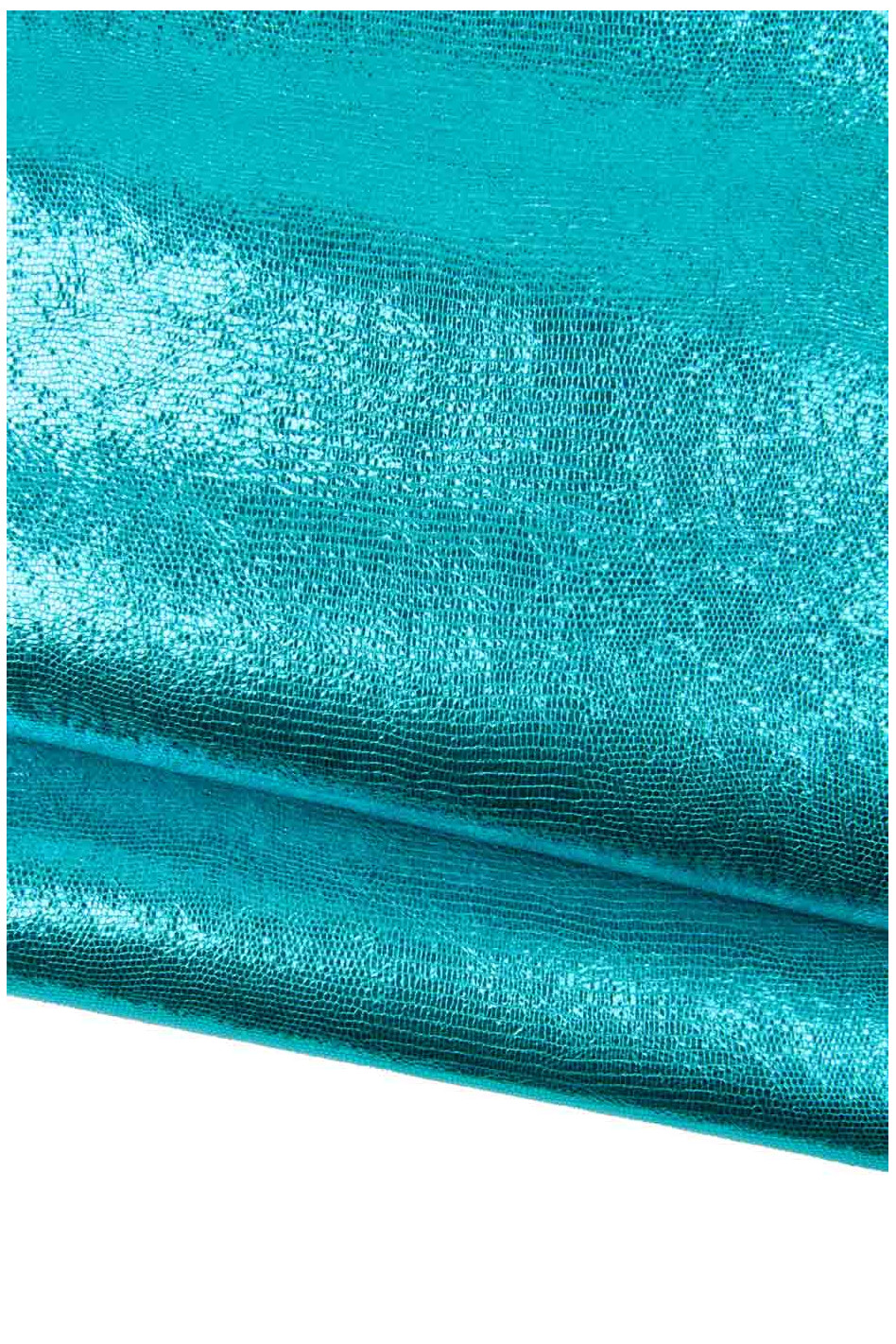 Wonderful turchoise metallic calfskin with lizard print, bright and soft hide for DIY projects.