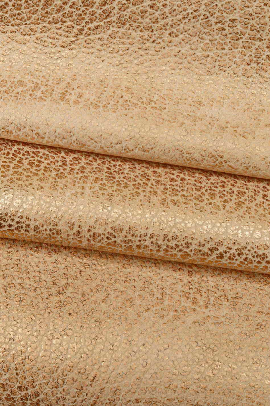 Pink pebble GRAIN printed leather skin, copper metallic bleach effect goatskin, bright soft hide