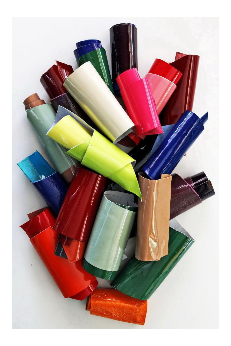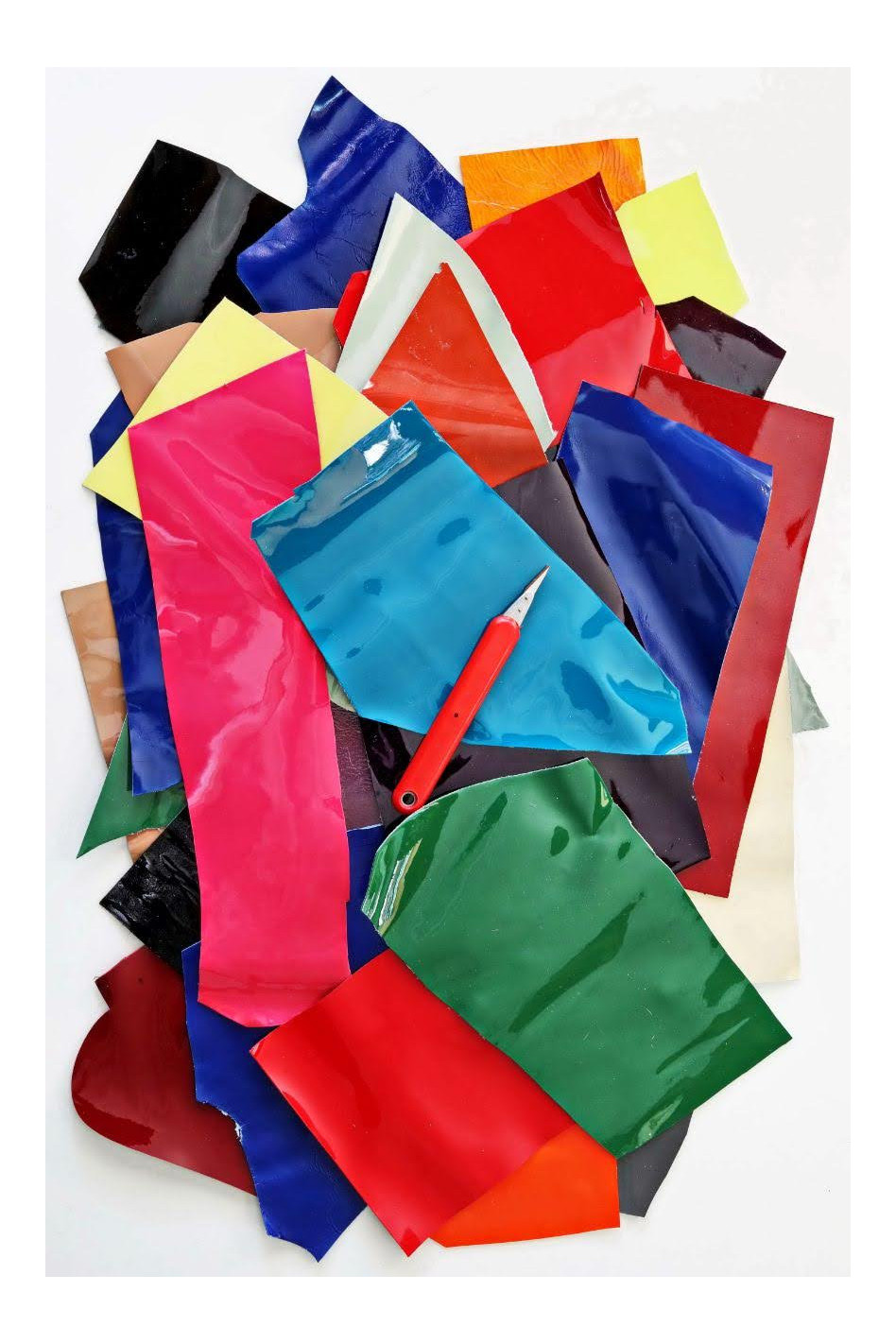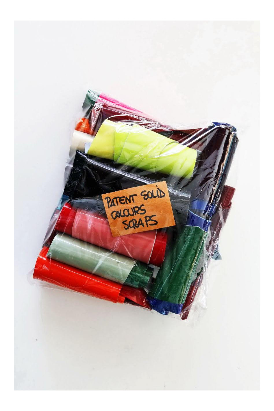 Leather patent solid colours scraps bag, in total for in total for 0,7 lbs (300 gr), 1 lbs (500 gr) and 2 lbs (1 kg)