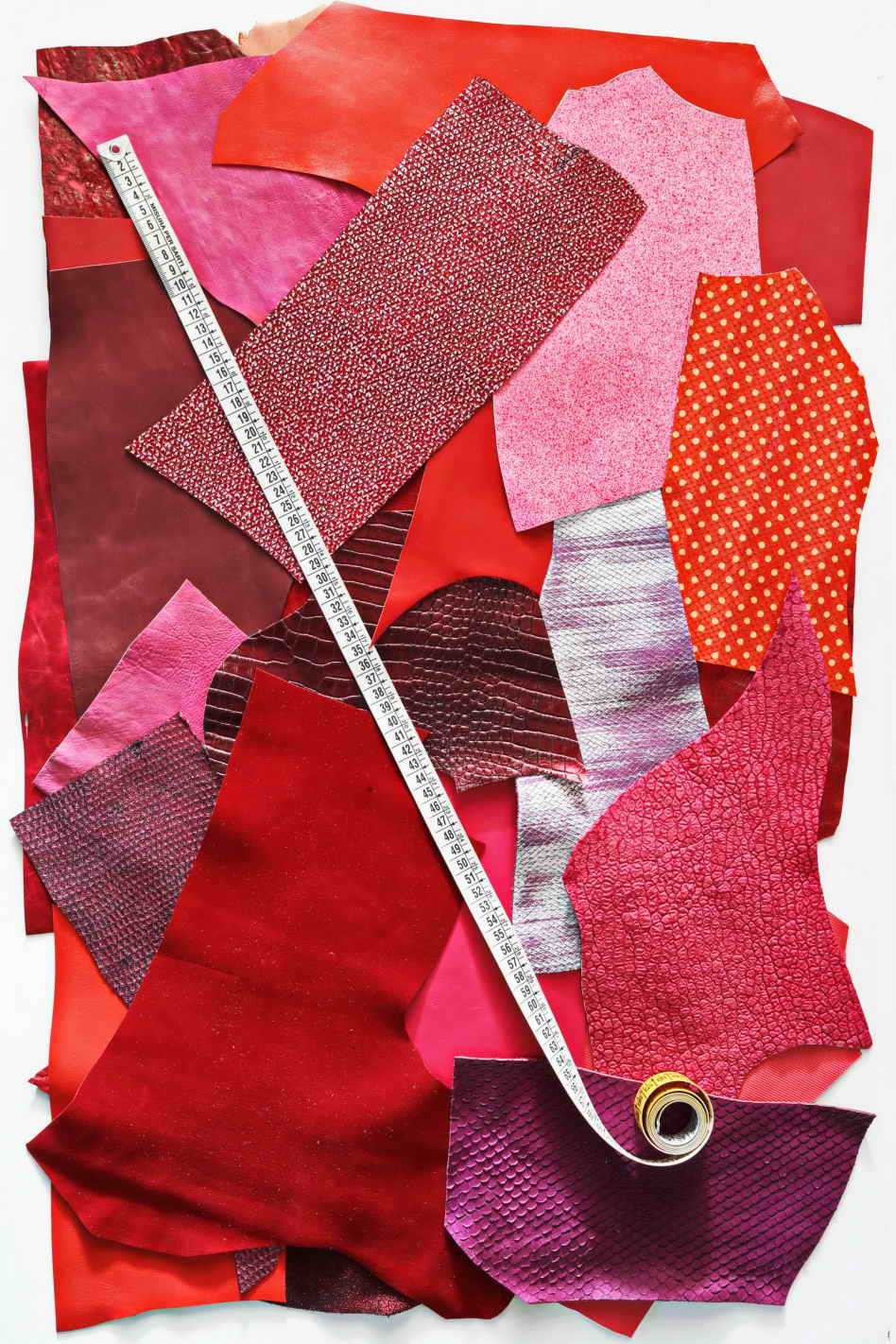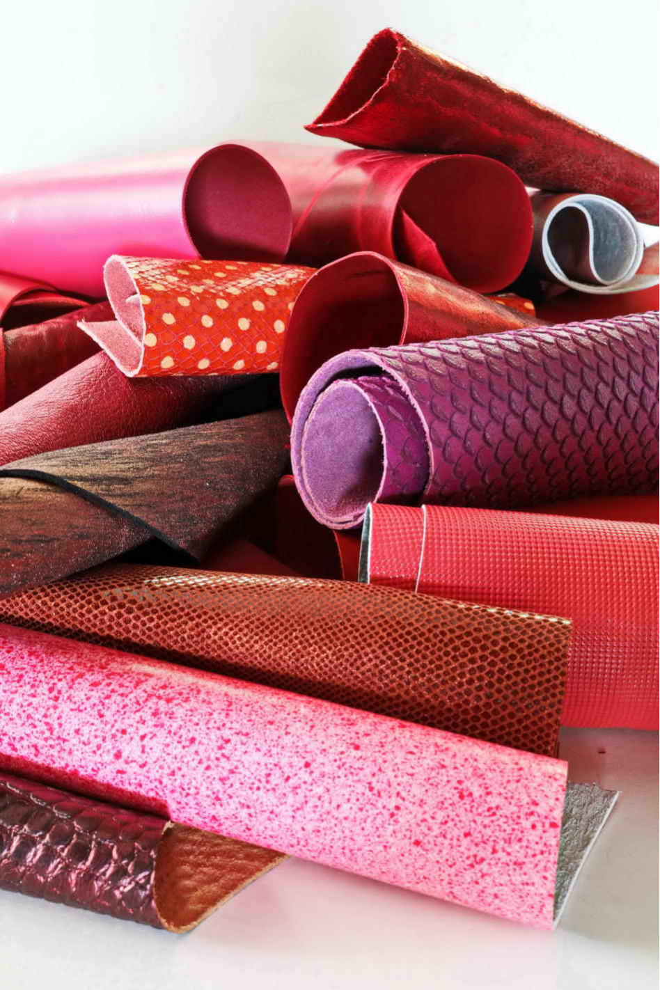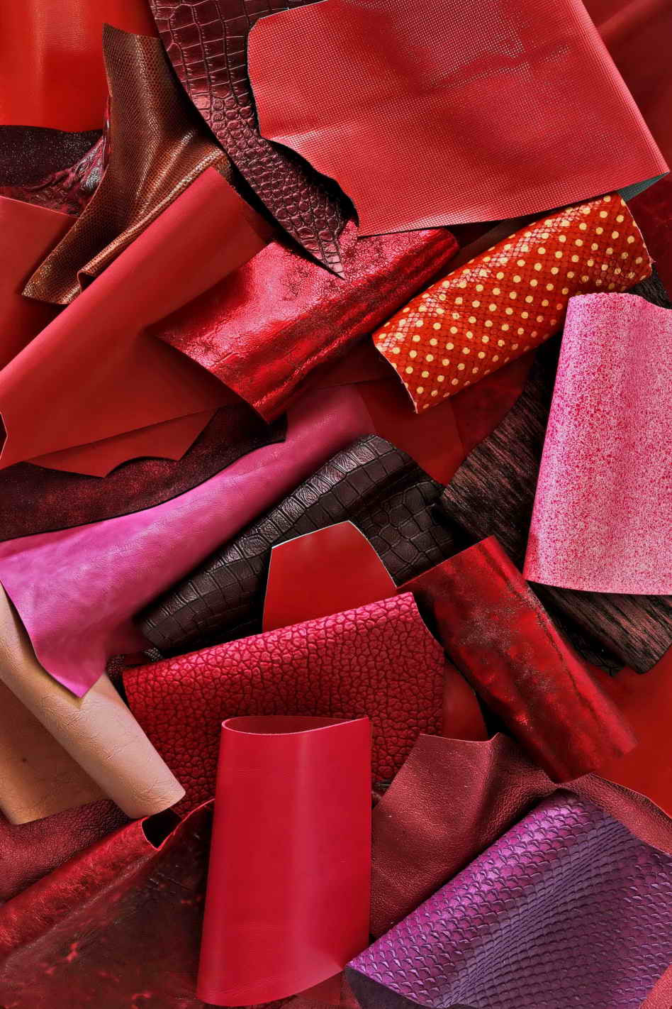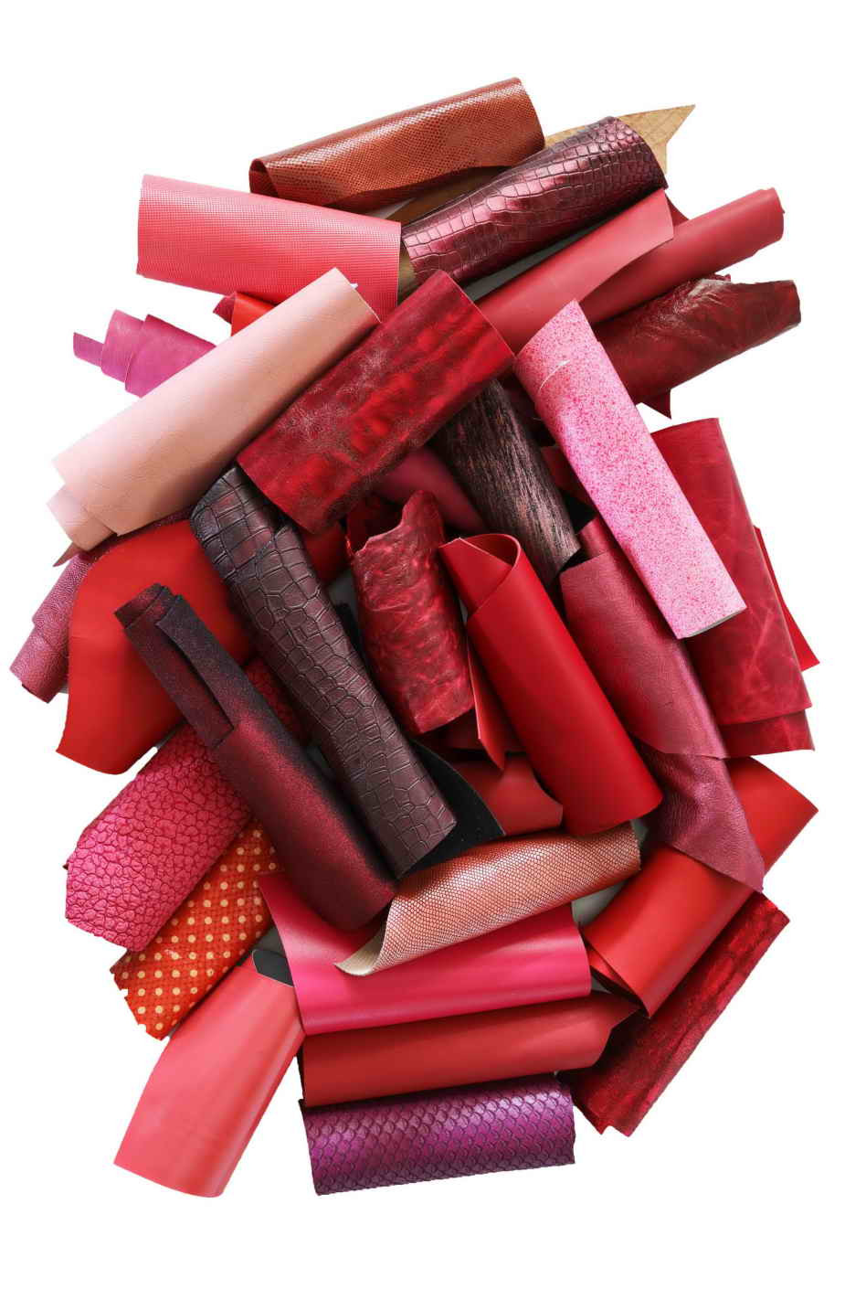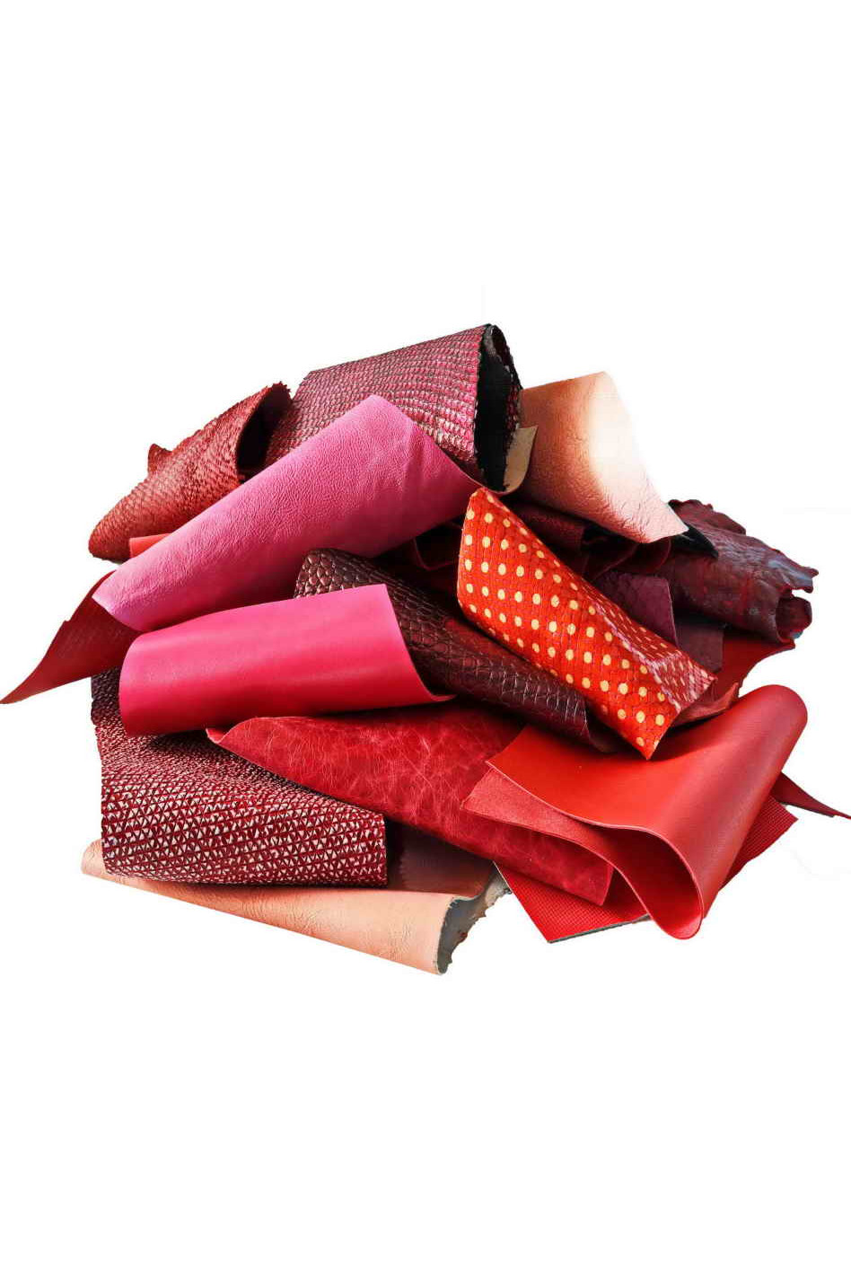 Leather scraps bag, RED and PINK tones, fancy textures, foils and softness various 0,7 lbs - 1 lbs - 1,7 lbs - 2 lbs