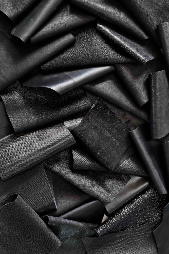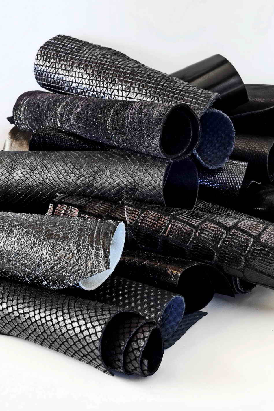 Leather scraps bag, BLACK tone, fancy textures, foils and softness various,, in total for 1 lbs and 2 lbs