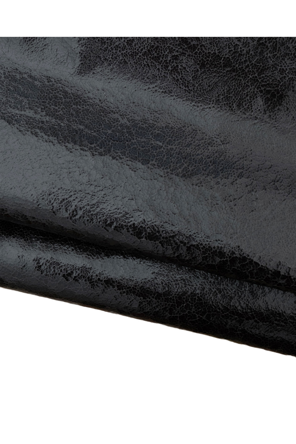 Black CRACKLE printed leather hide, GLOSSY soft calfskin, sporty cowhide for crafters