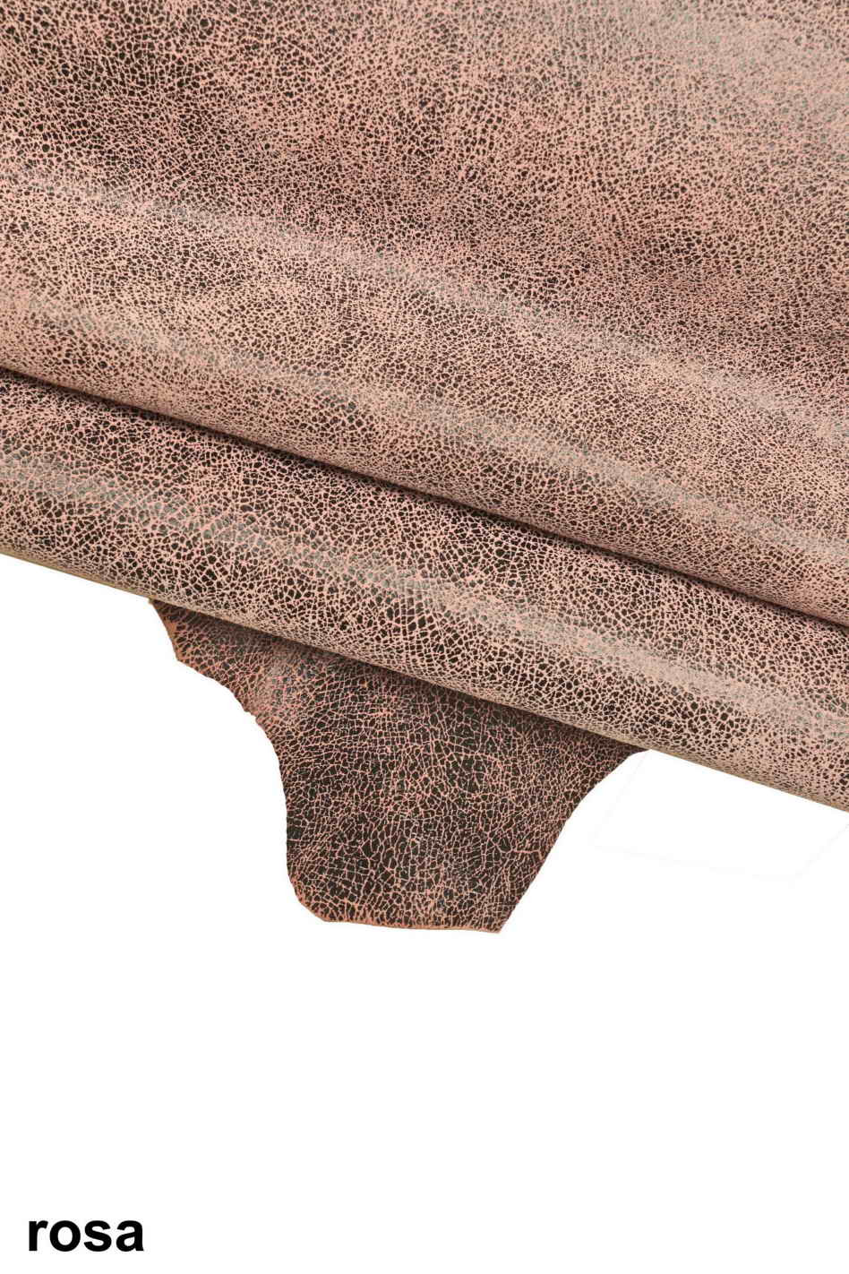Particular light blue, pink and powder pink suede goatskin with crackle print, soft, available in 3 colours.