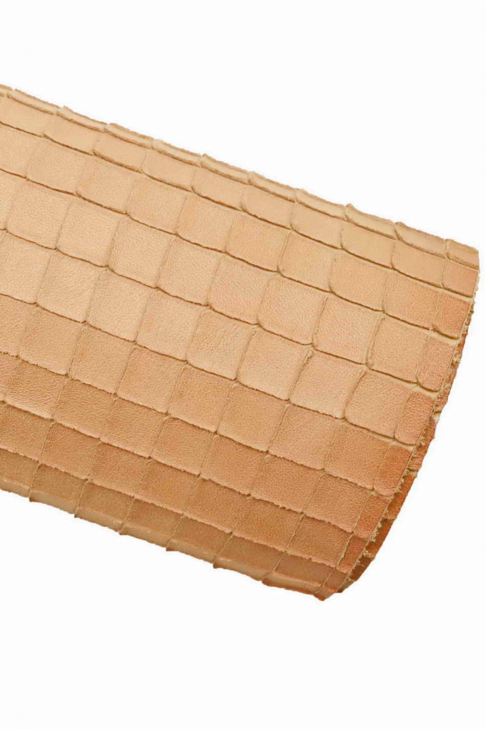 Wonderful pink vegetable-tanned calfskin, with geometric carved print, soft and semi-gloss.