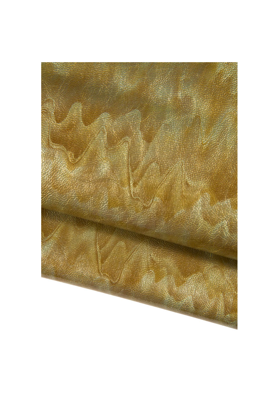 Special beige gold leather skin, naplack wave - like printed patent goatskin, golden glossy wrinkled skin. Ideal for crafters and hobbyists.