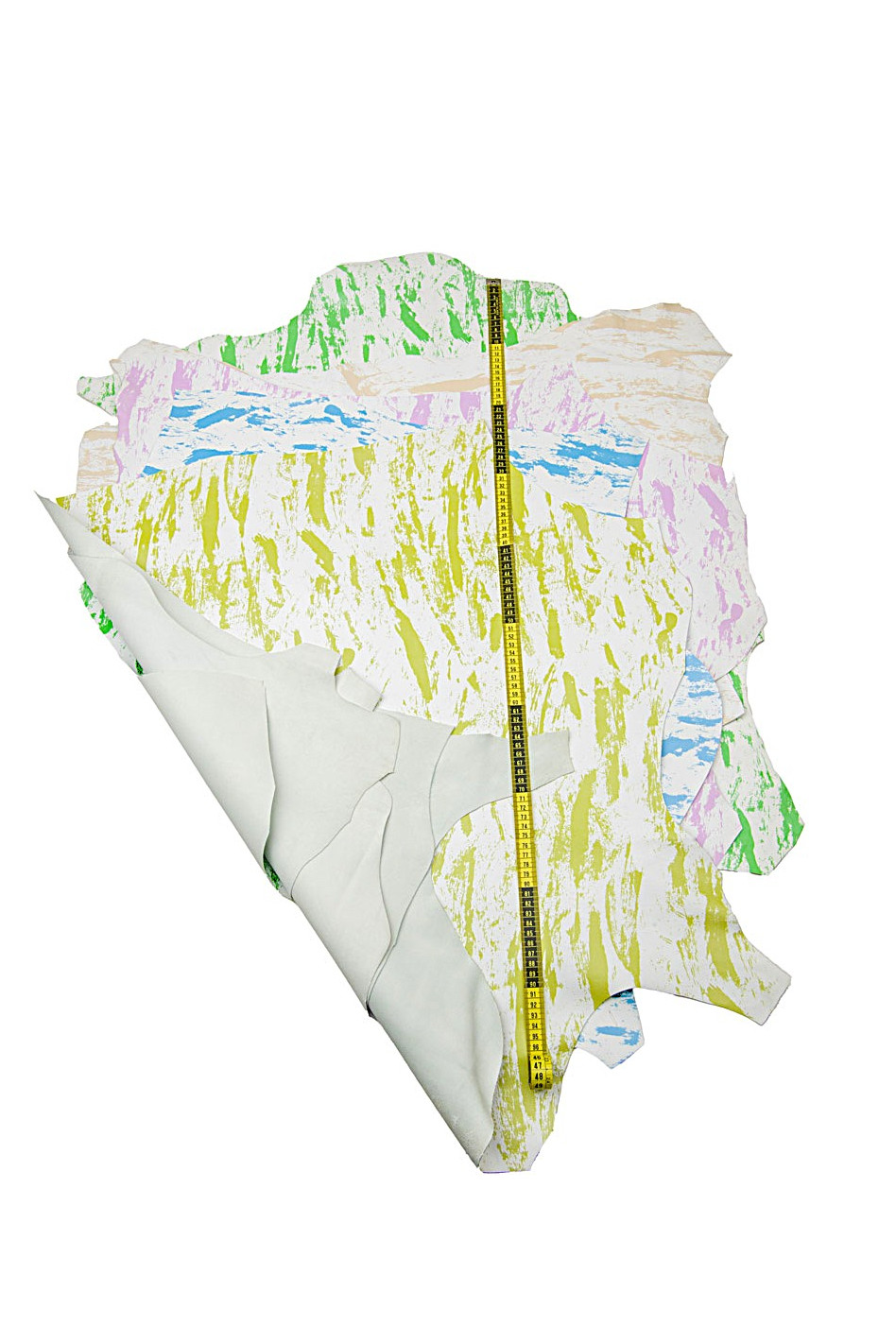 STROKES PATTERN on white leather skin, splash printed nappa sheepskin, soft lambskin for hobbyists