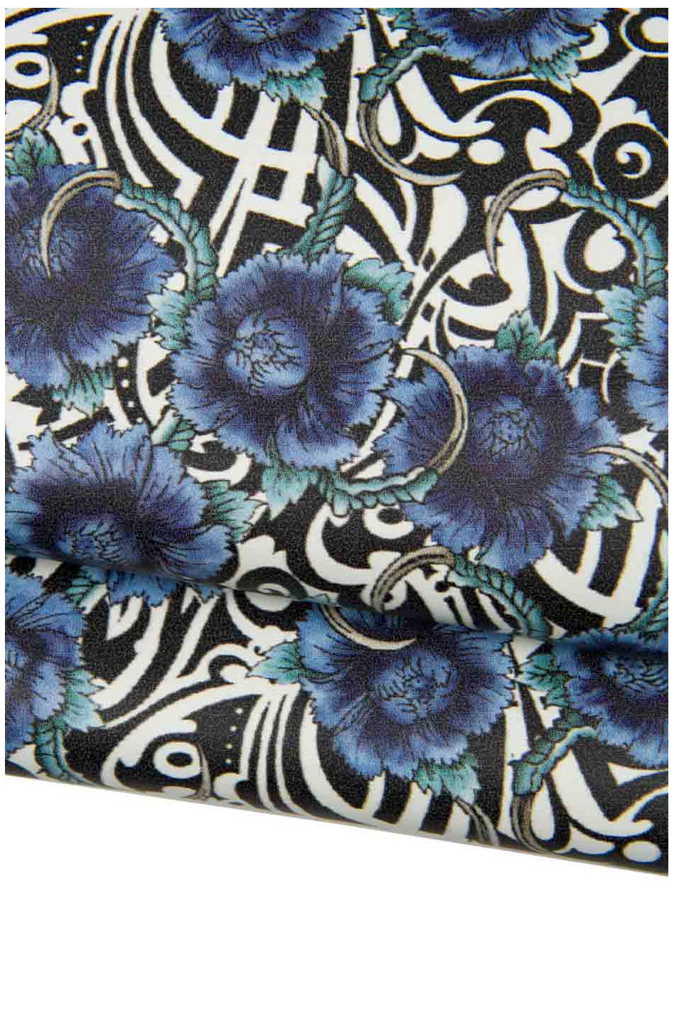 Fantastic Bblue floral print on white - black textured calfskin, smooth matt cowhide, 1.2 mm, for hobbyists.