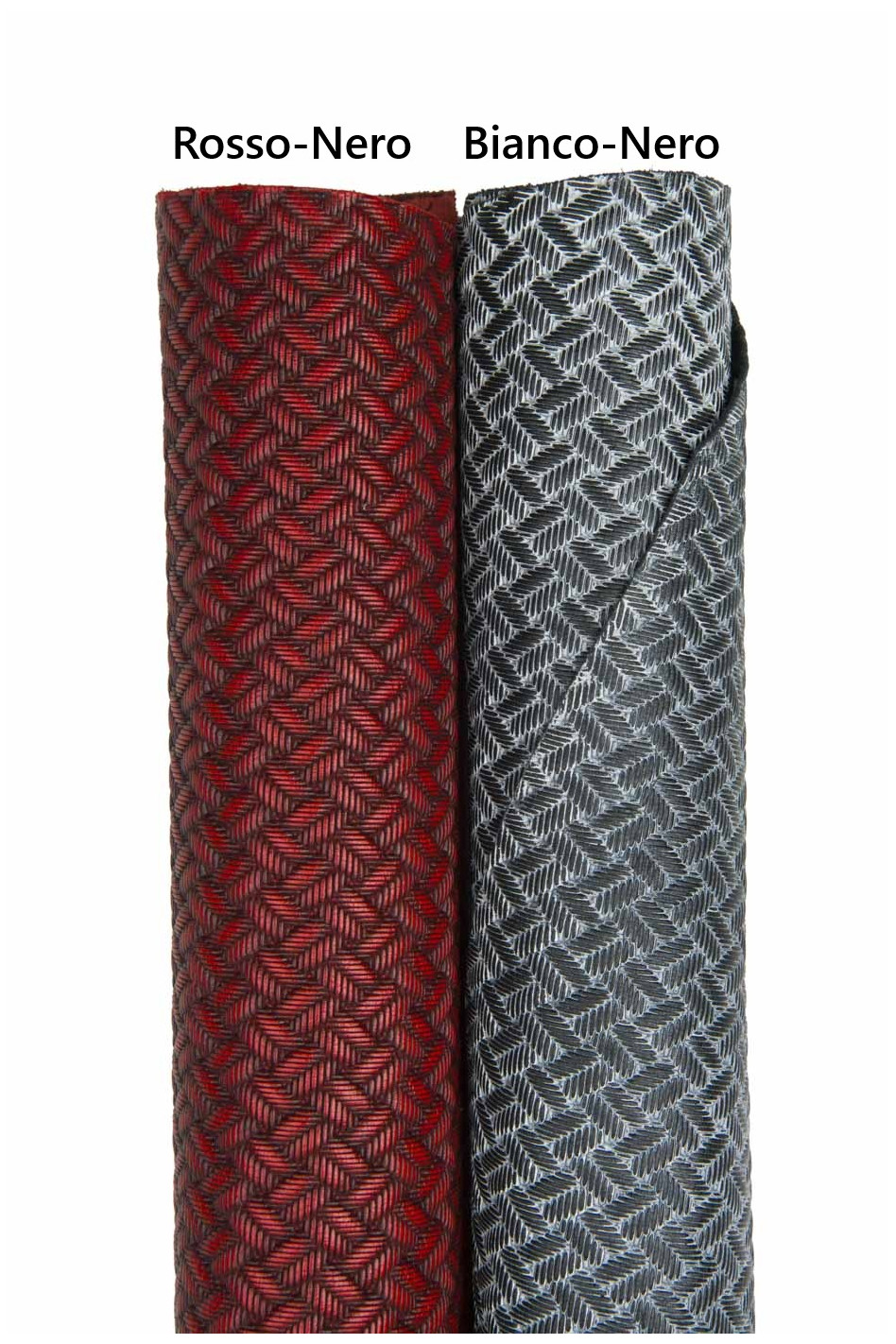 Particular braided printed leather hides, red-black, white - black embossed cowhide, sporty soft calfskin.