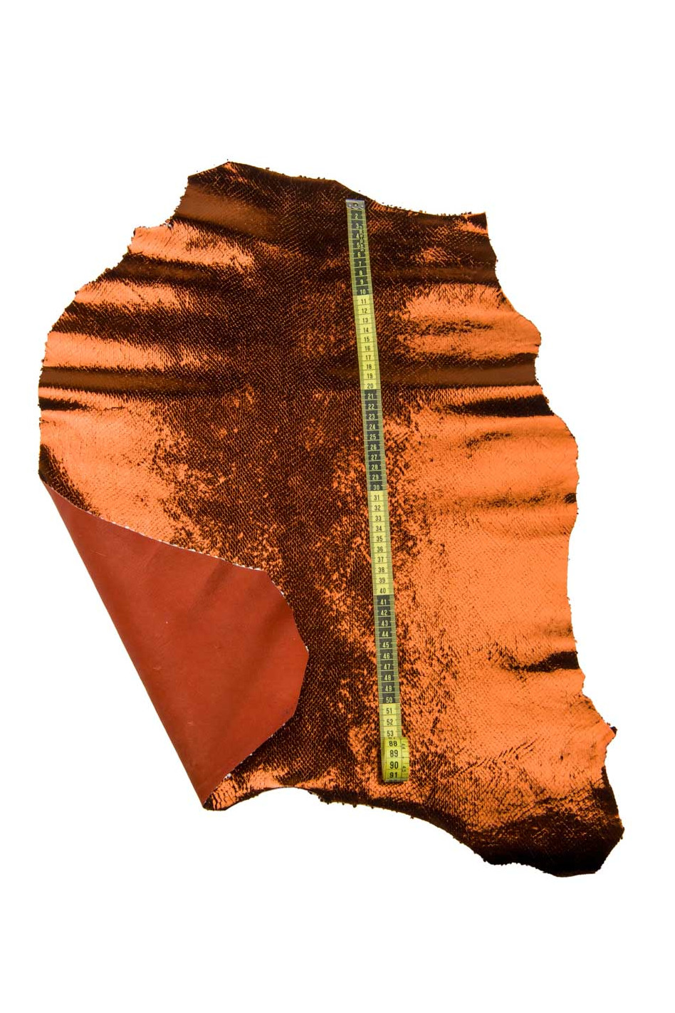 Rust PYTHON leather skin, METALLIC reptile printed goatskin, glossy soft hide for DIY projects