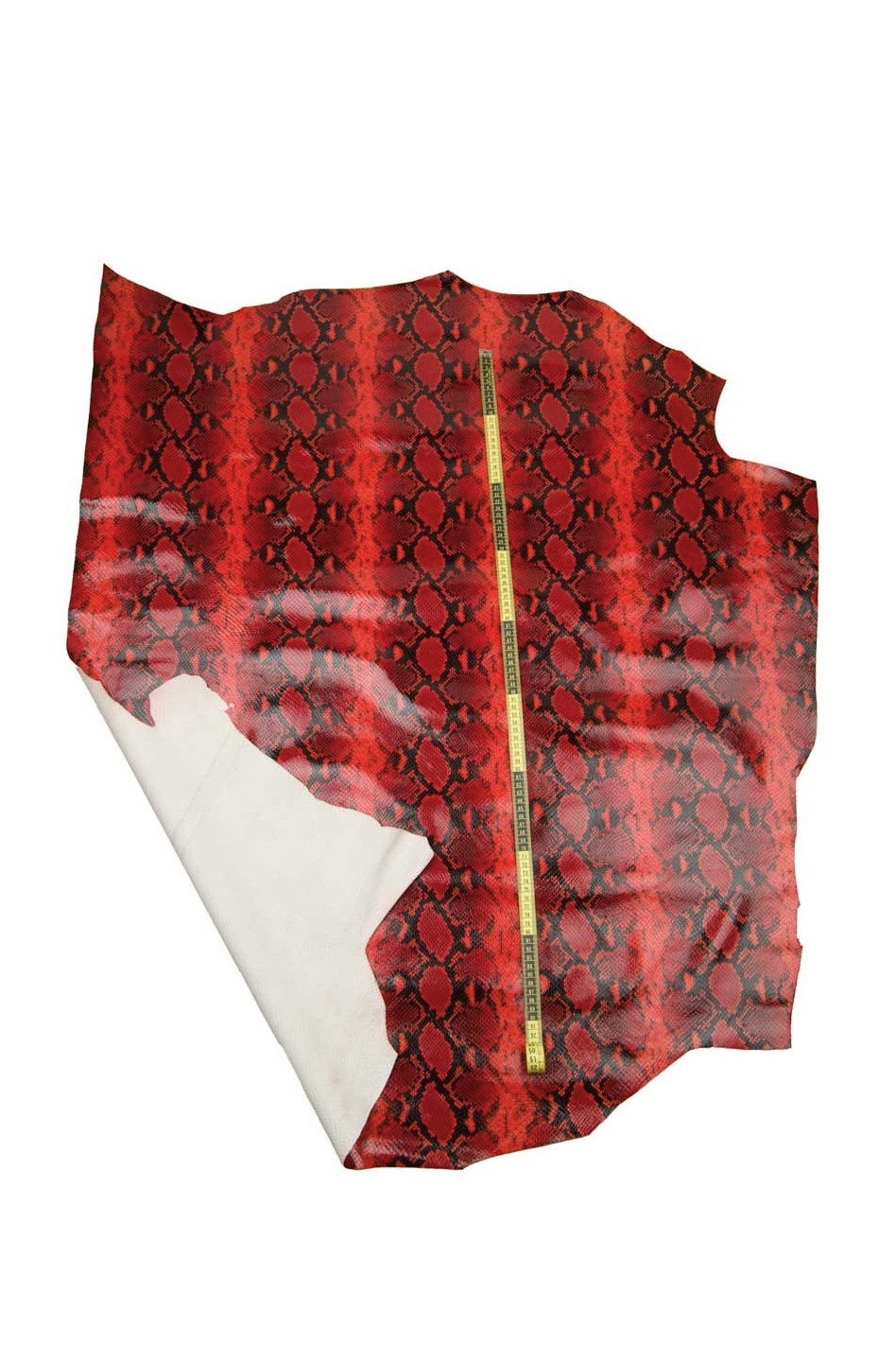 Red black PYTHON textured leather hide, REPTILE printed cowhide, glossy soft SNAKESKIN calfskin for crafters
