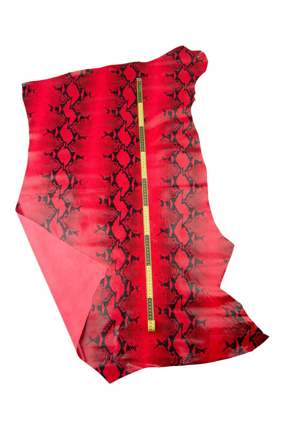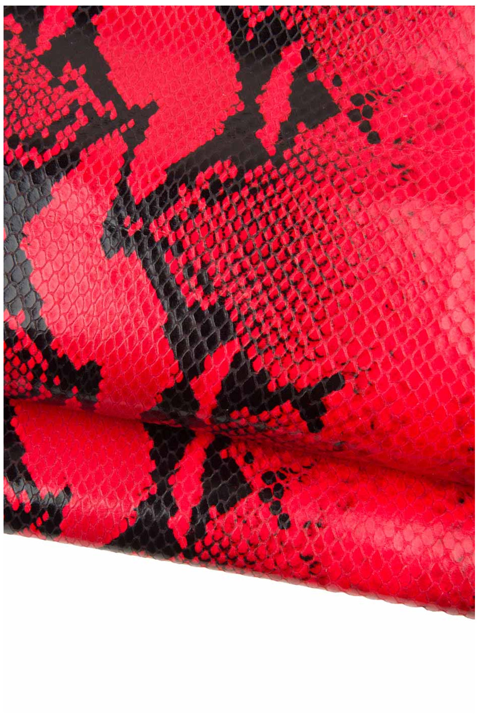 Red black PYTHON textured leather hide, REPTILE printed cowhide, glossy soft SNAKESKIN calfskin for crafters