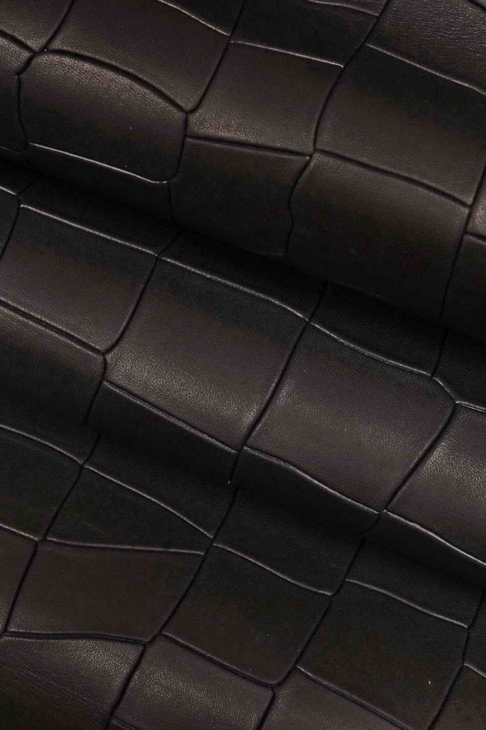 Particular midnight blue calfskin with carved crocodile print, semi-glossy, sporty, medium softness.