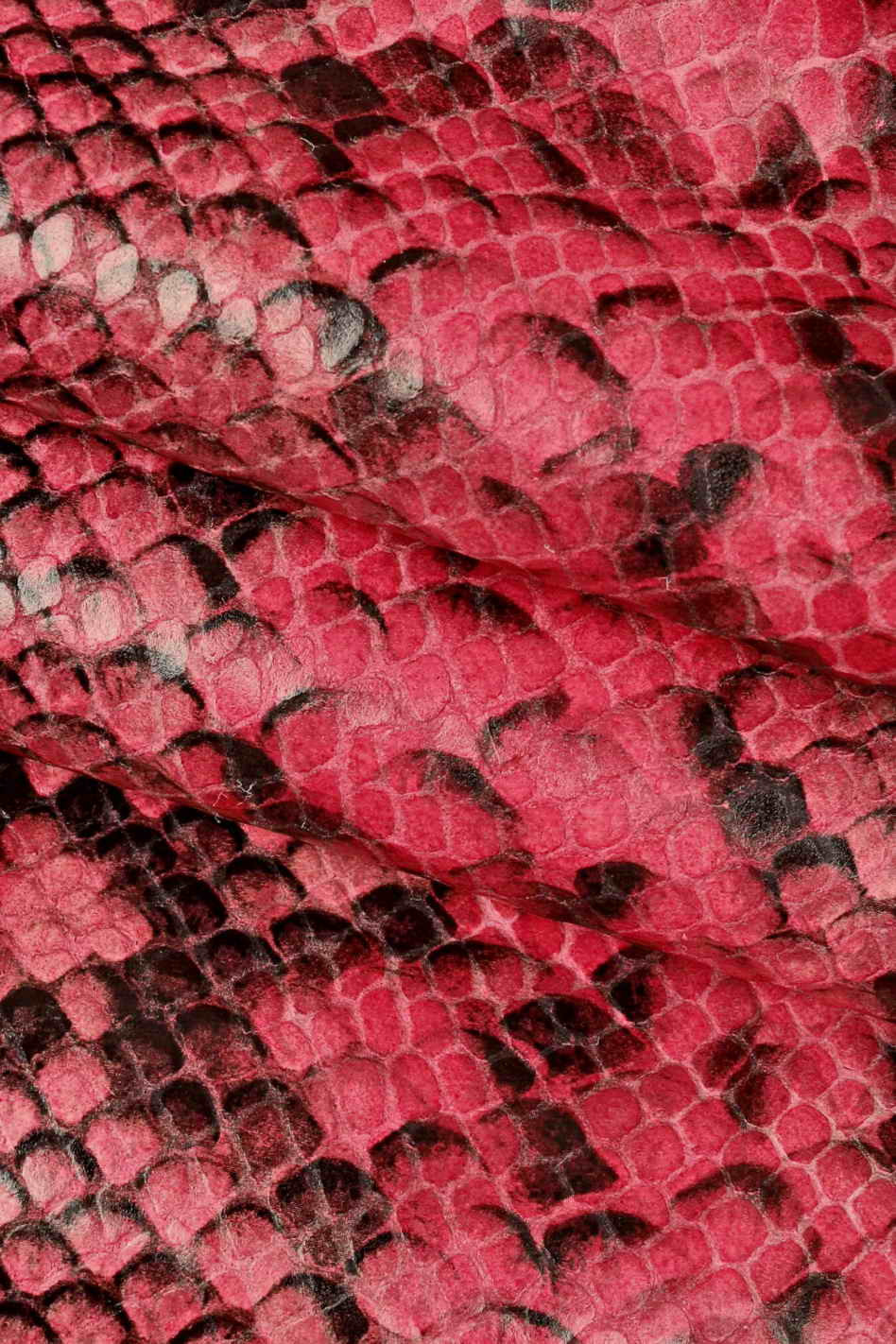 Pink black PYTHON printed leather skin, fuchsia snake textured goatskin, glossy animal print reptile hide