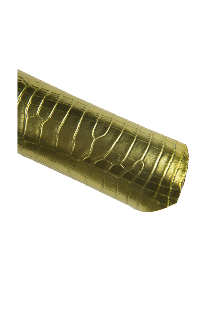 Fabulous gold laminated calfskin with crocodile print, shiny.
