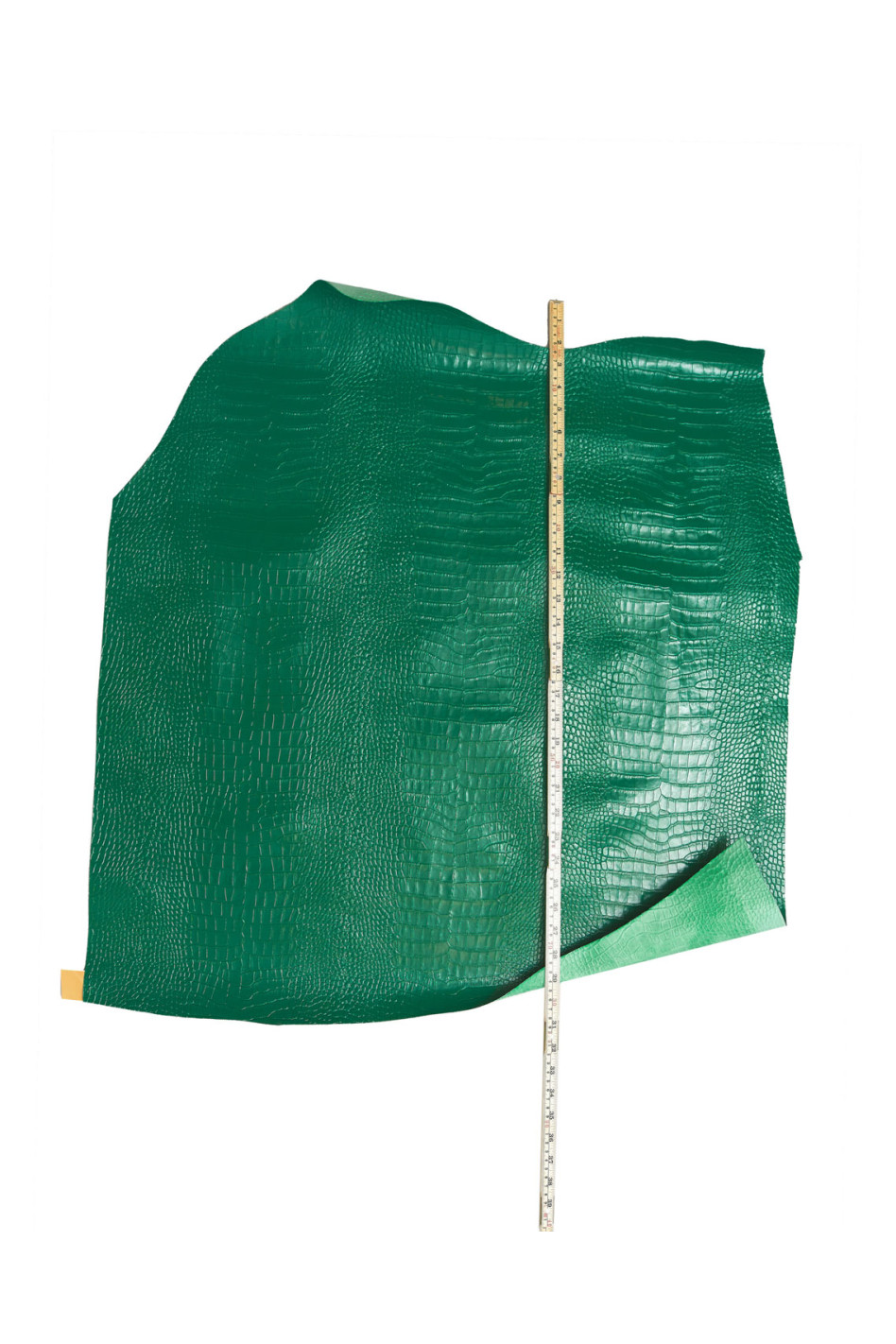 Green CROCODILE embossed leather hide, alligator pattern on glossy calfskin, printed cowhide 0.8 - 0.9 mm