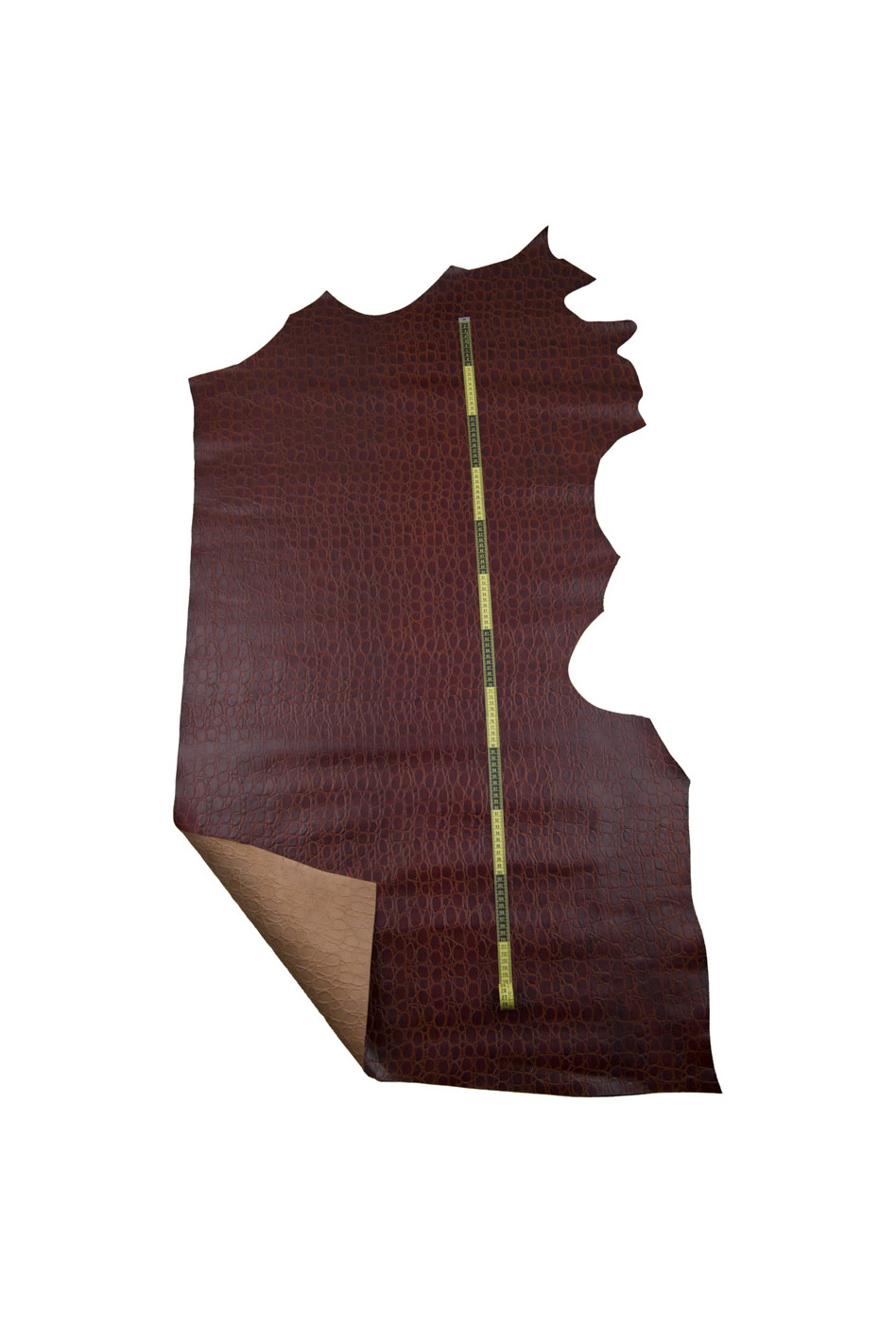 Amazing reddish brown calfskin with alligator print, semi shiny and soft.