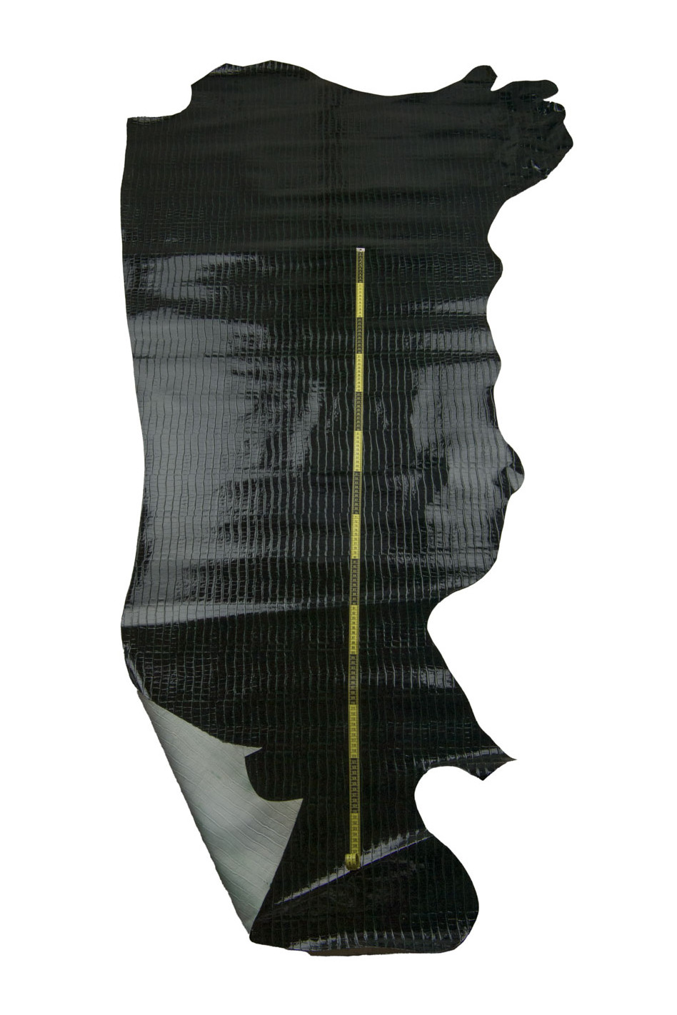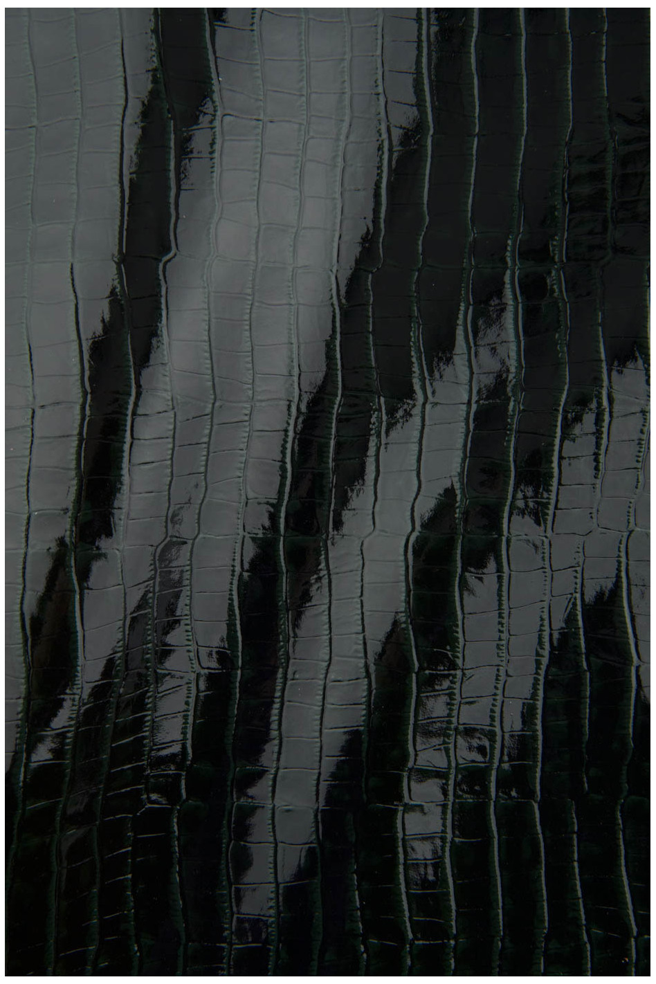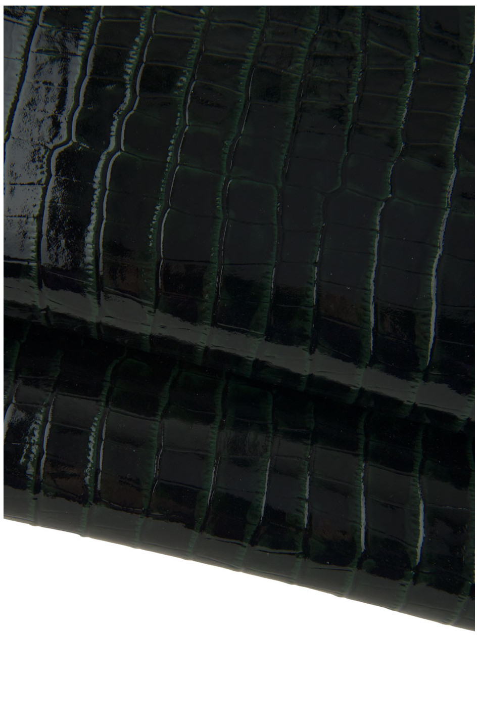Fabulous patent black green calfskin, shiny and rigid with crocodile print.