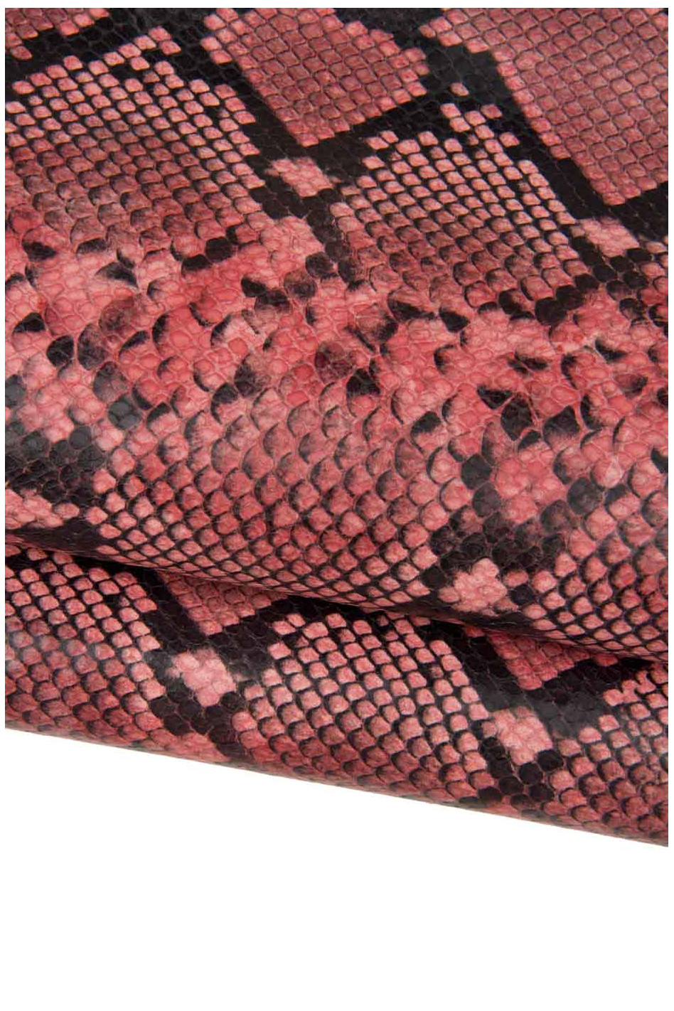 Pink PYTHON textured leather hide, SNAKE printed glossy cowhide, reptile pattern on soft calfskin