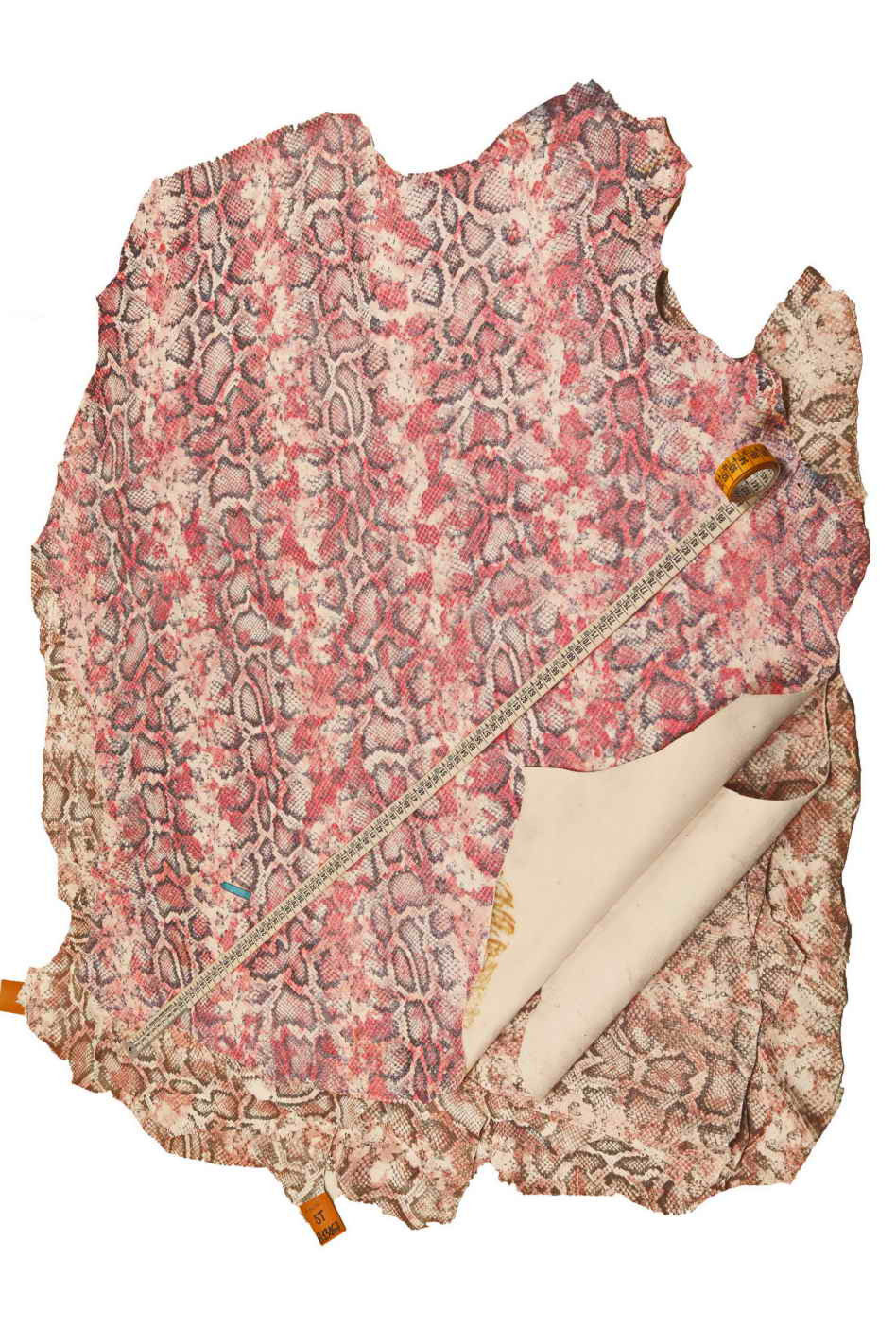 A (bianco-rosa-fucile) : 32 x 24 inches (size of the smallest of two hides), 29 x 19 inches, 20 x 23 inches (size of the smallest of two hides), 26 x 26 inches (crease)
