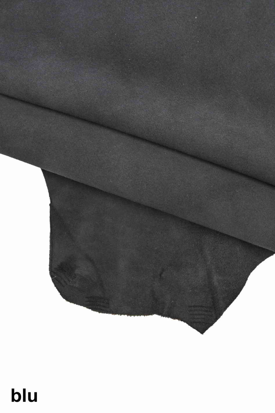 Grigio, azzurro, blu suede goatskin, silky touch; velour skin, classic look. This thin and soft leather, with good "writing effect", is suitable for any kind of handcrafted creations.
