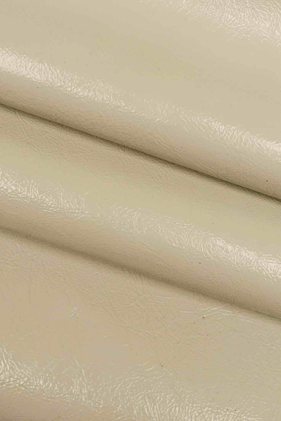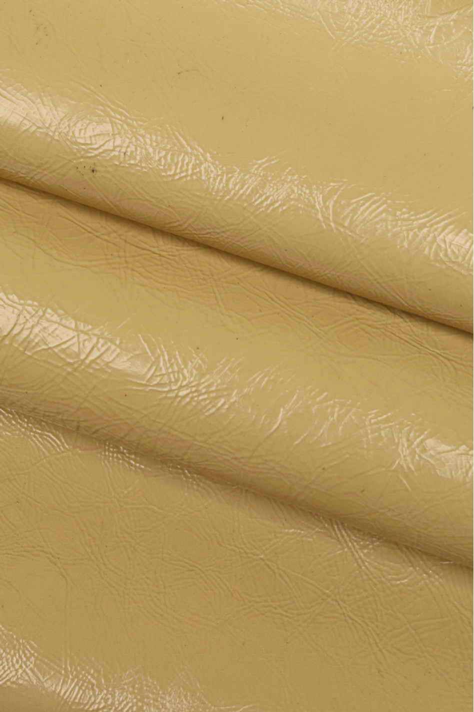 Particular Italian naplak patent calfskin with crumpled, glossy effect, medium softness, sporty look, 3 colors available.
