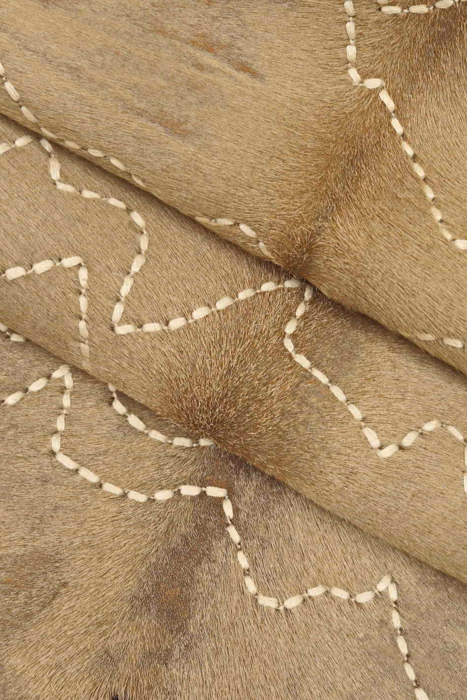 BEIGE HAIR on leather hide, embroidered hairy cowhide, vintage super soft pony effect calfskin
