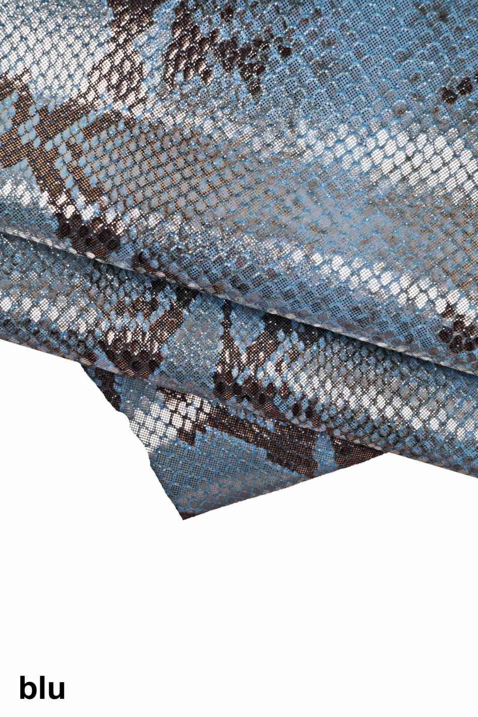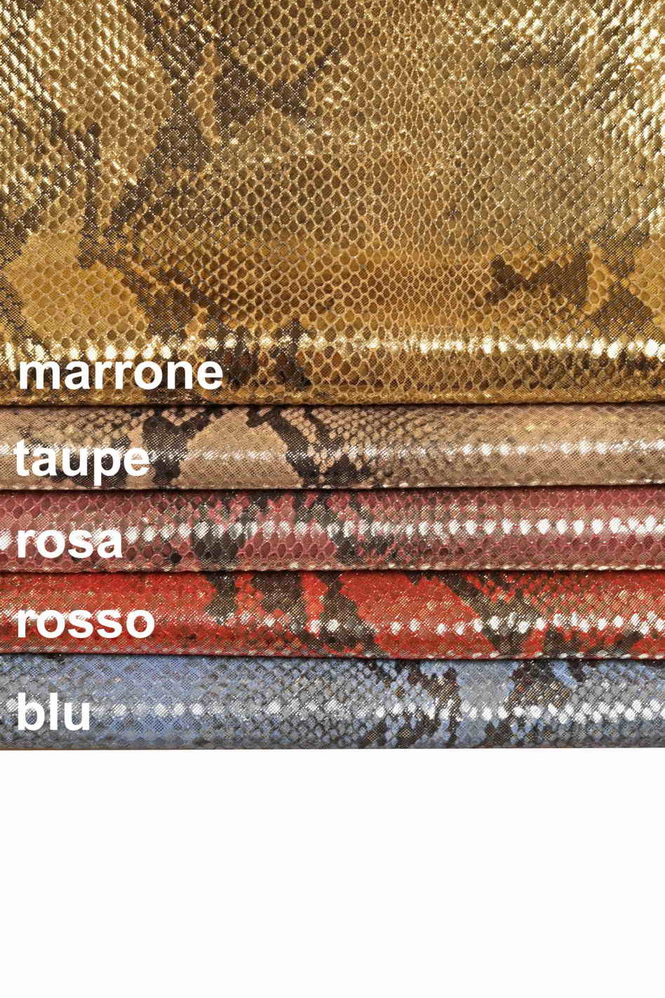Taupe brown blue red pink PYTHON printed leather hide, textured metallic calfskin, soft skin