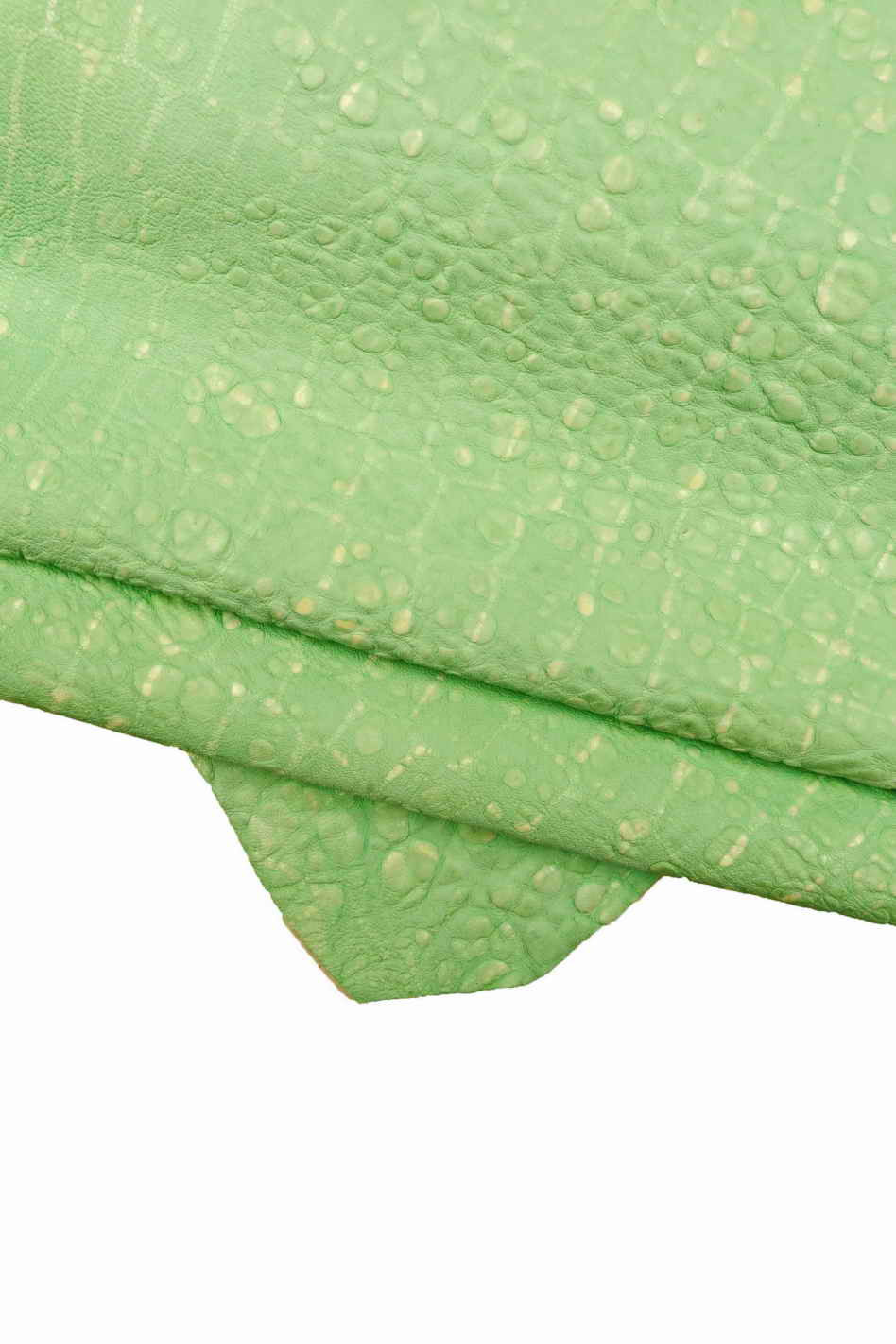 Light green CROCODILE printed leather skin, irregular pebble grain soft goatskin
