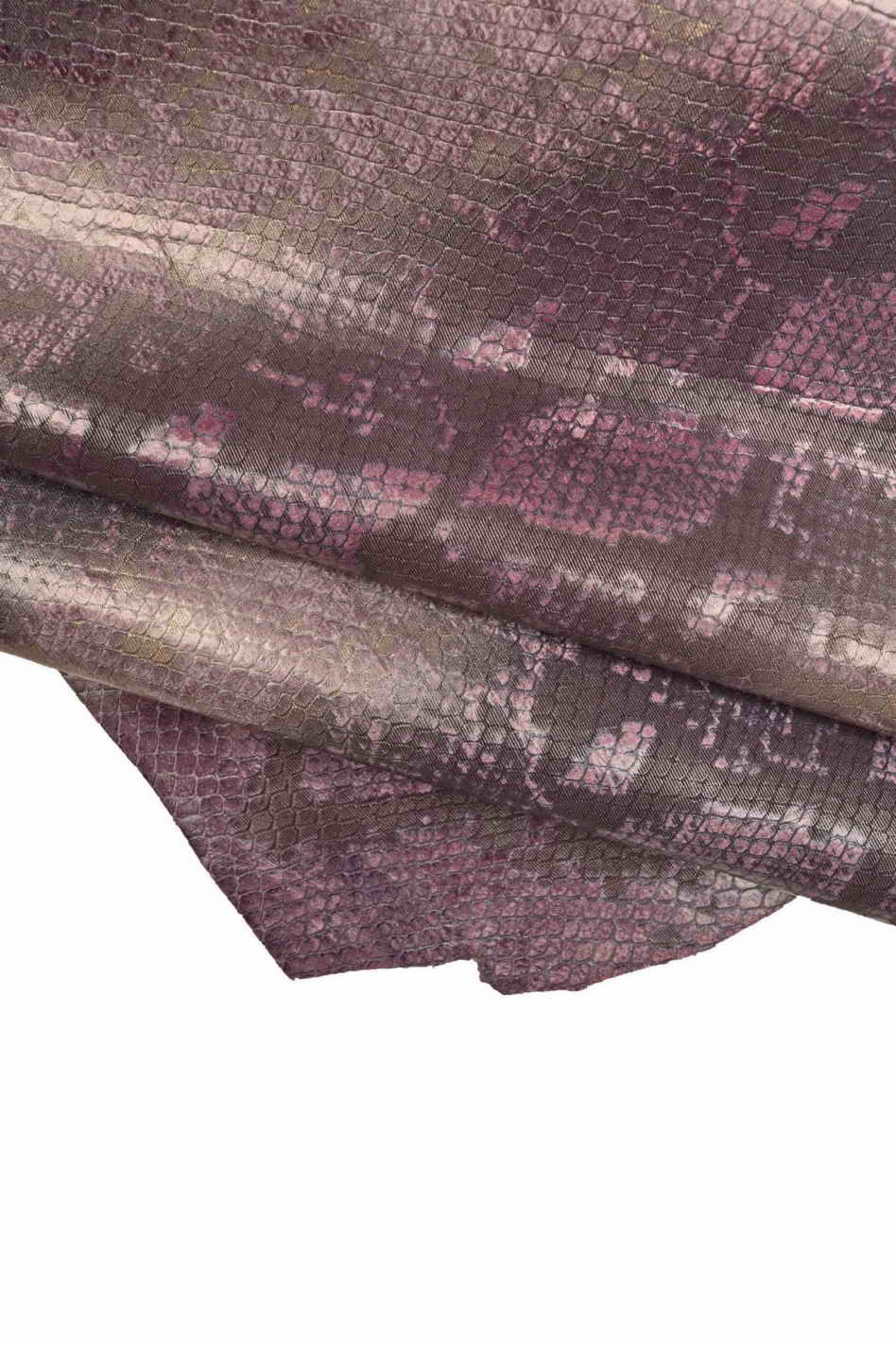 Wonderful purple goatskin with snake reptile print, shiny and soft.