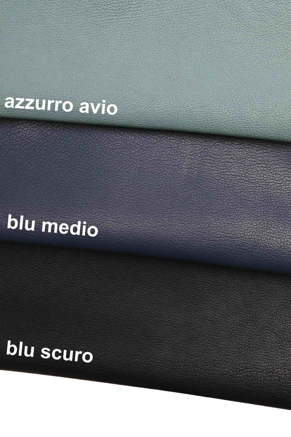 Italian leather, small grain print goat, semi-gloss, soft, sporty look, 3 colors available.