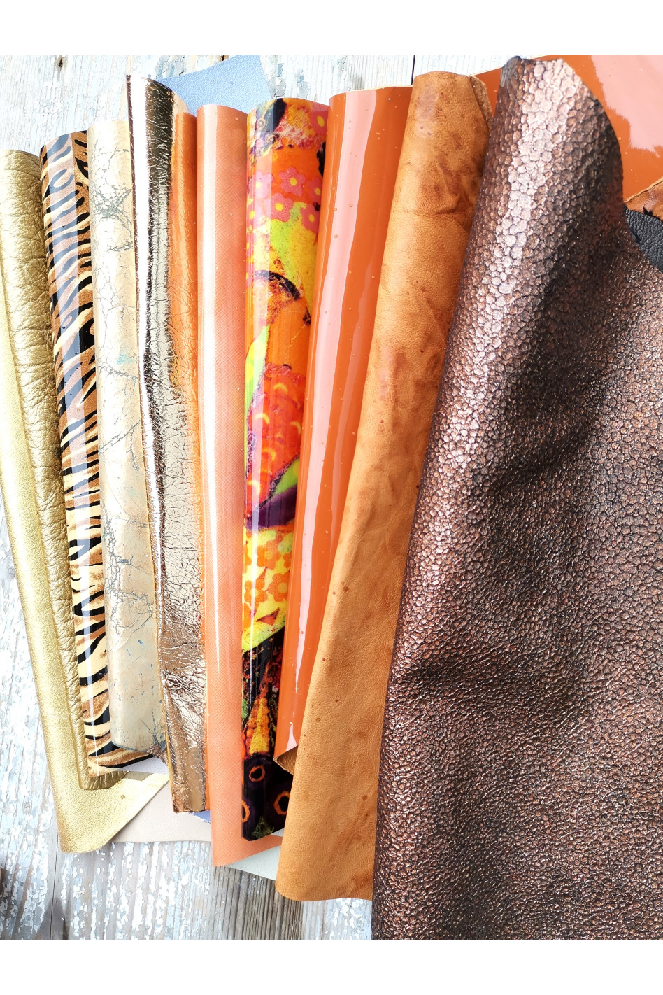 Gorgeous fancy leather scraps for lovers of gold, tan and other warm tones!