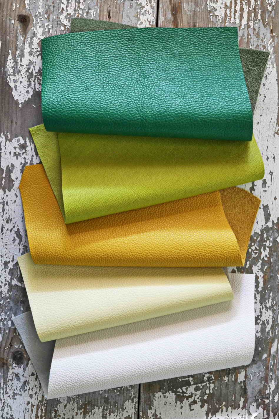 Gorgeous fancy leather scraps for lovers of yellow and green tones!