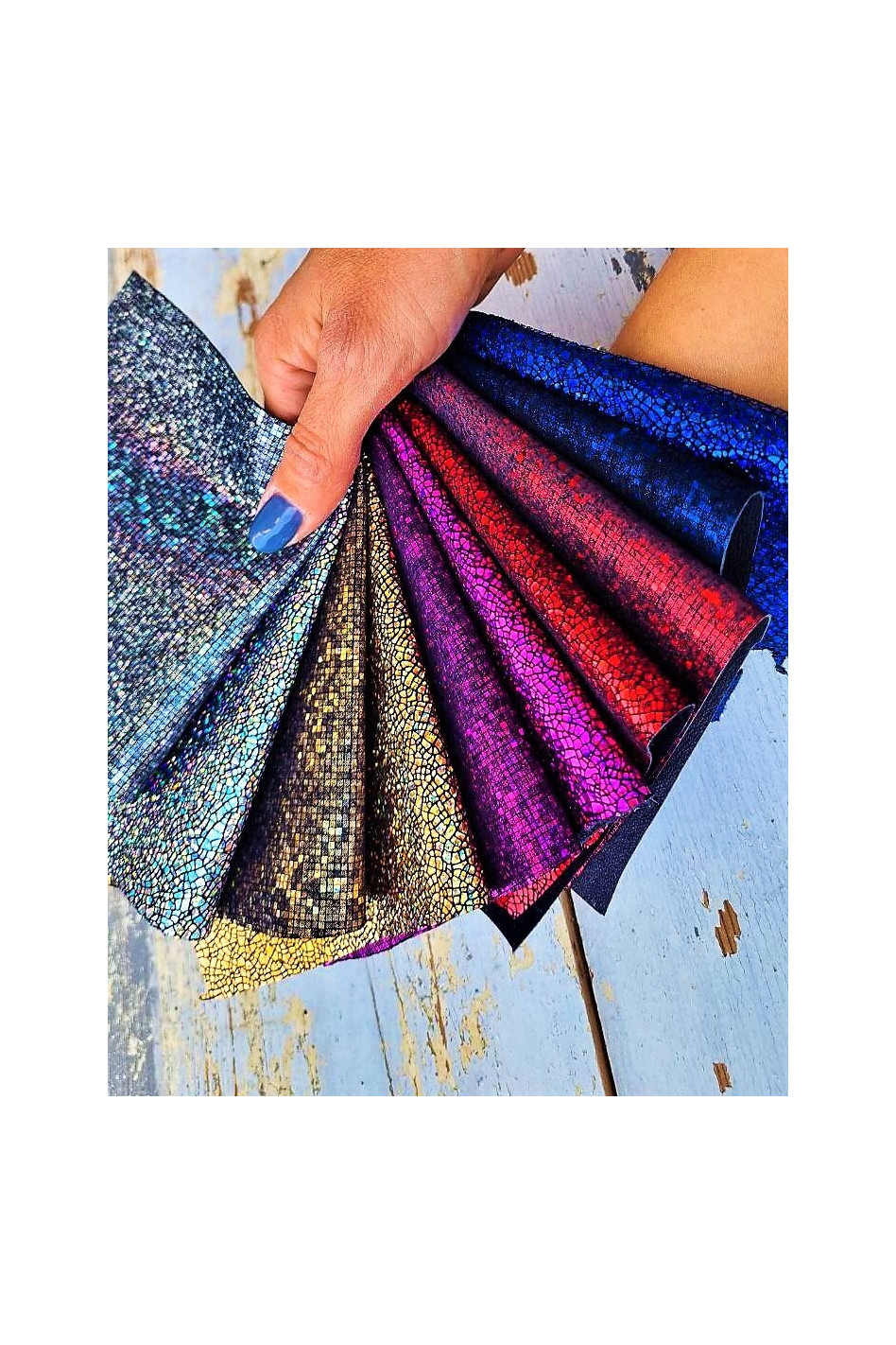 Gorgeous fancy leather scraps for lovers of pixel and crakled textures in bright and shiny colors!
