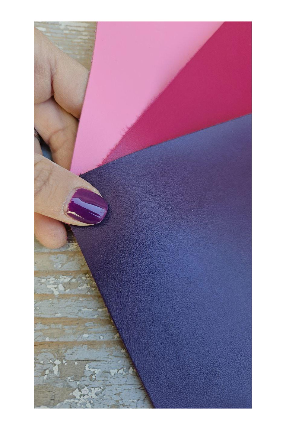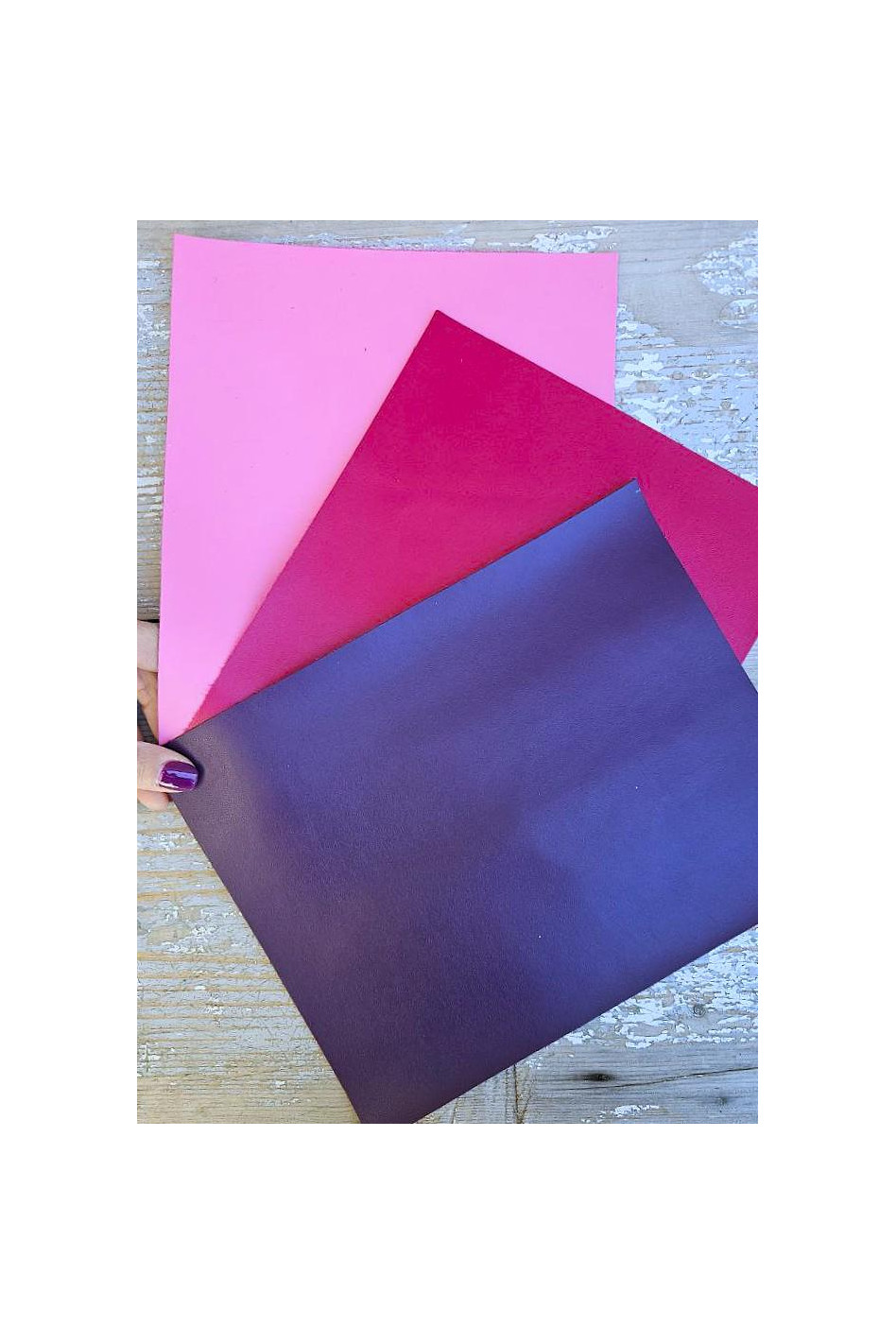 3 Selected leather pieces, solid colors, pink, purple and magenta, selection leather pieces as per pictures 8x10" / 20x25 cm
