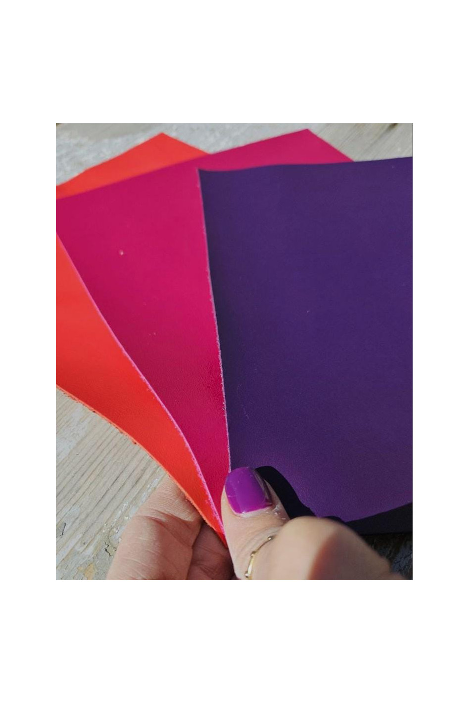 Gorgeous fancy solid colors leather scraps in purple, magenta and red!