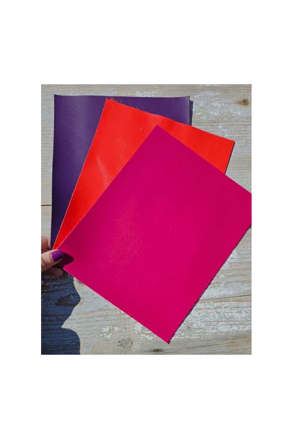 3 Selected leather pieces, solid colors, red, purple, magenta, selection leather pcs as per pictures, very soft 8x10"/20x25 cm