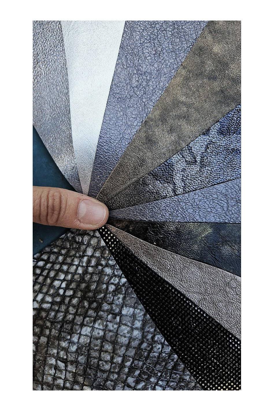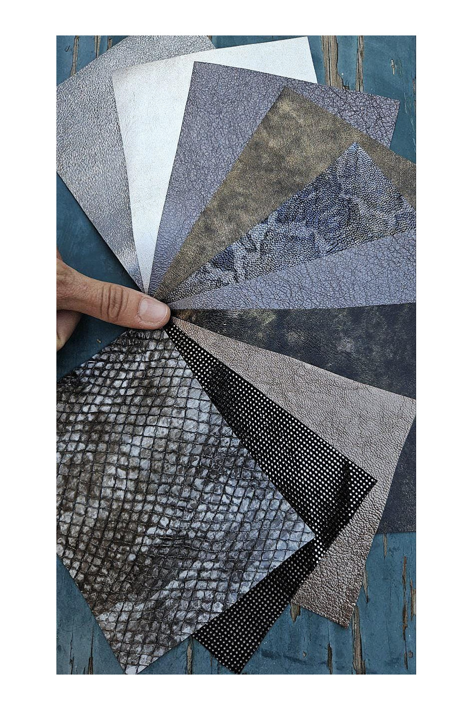 10 Selected leather scraps, GREY and...