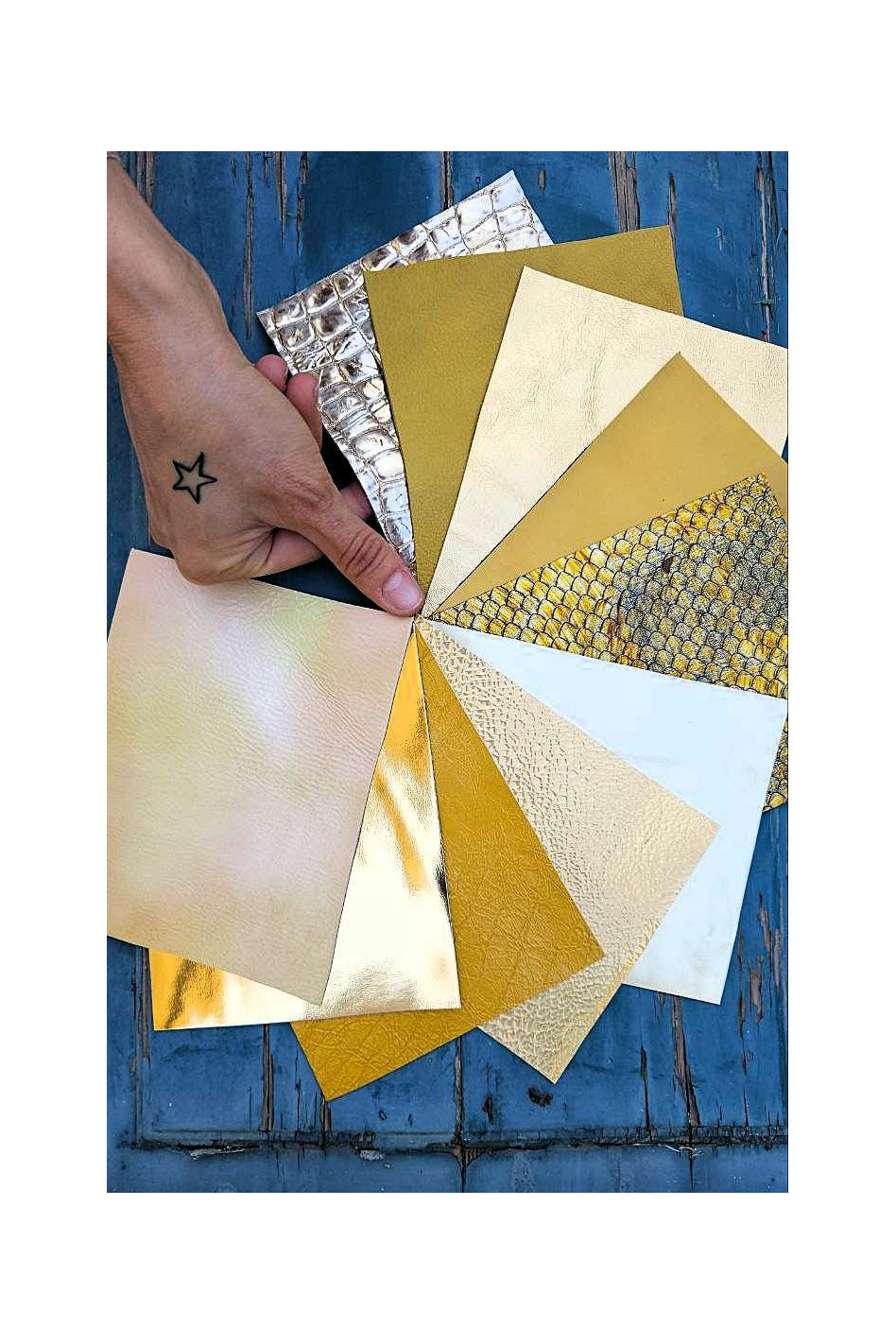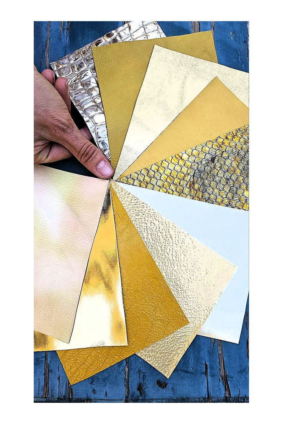 Gorgeous fancy leather scraps gold color various textures!