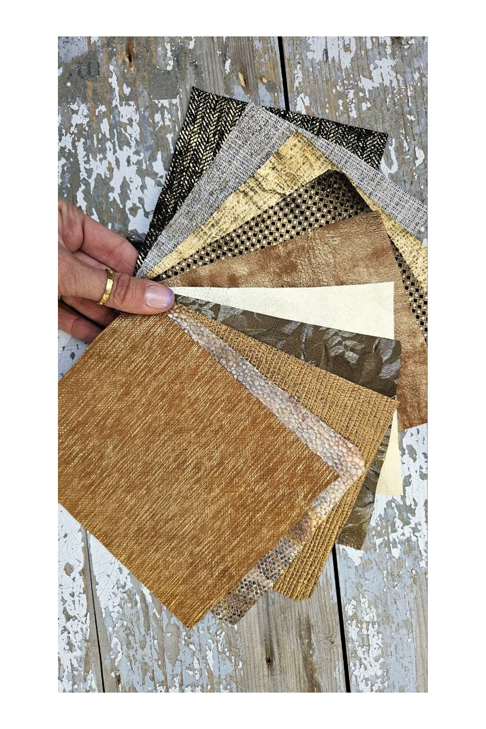 10 Piece Leather Swatch Set - Gold & Bronze Shades - Mixed Textures - Crafting Supplies -