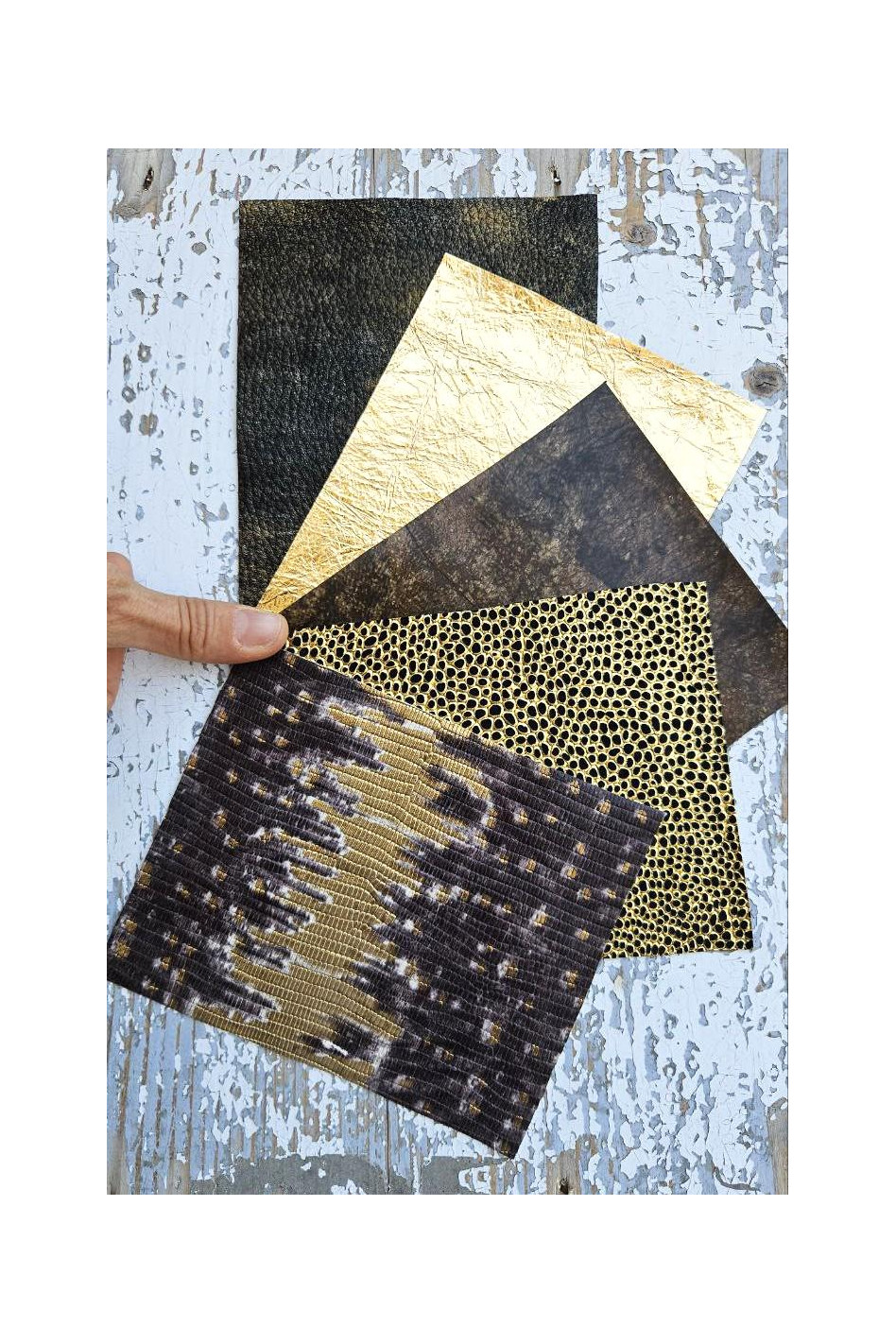 Gorgeous fancy leather scraps various textures, gold and bronze colors!