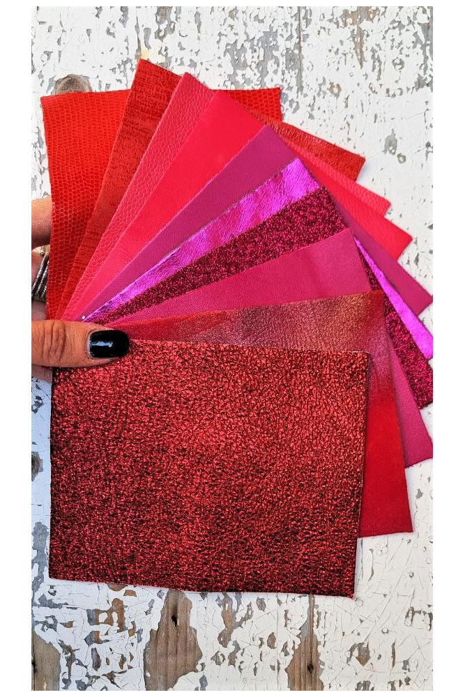 10 Colorful and bright printed leather scraps SELECTED selection, printed, solid and...
