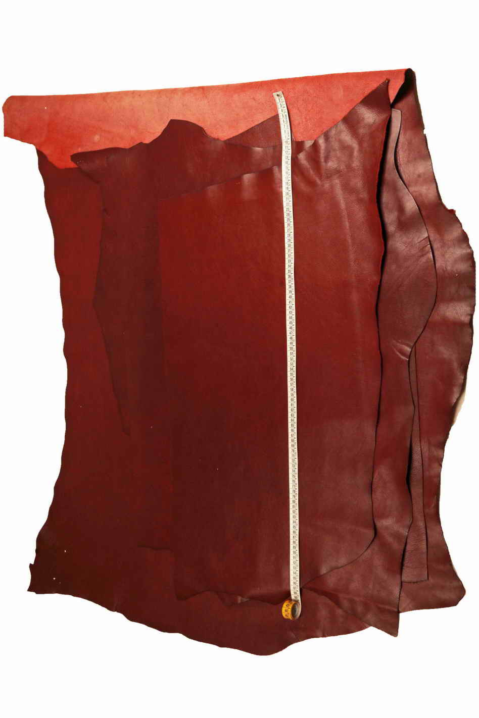 Burgundy VEGETABLE tan leather hide, sporty cowhide with light natural grain, glossy wrinkled calfskin