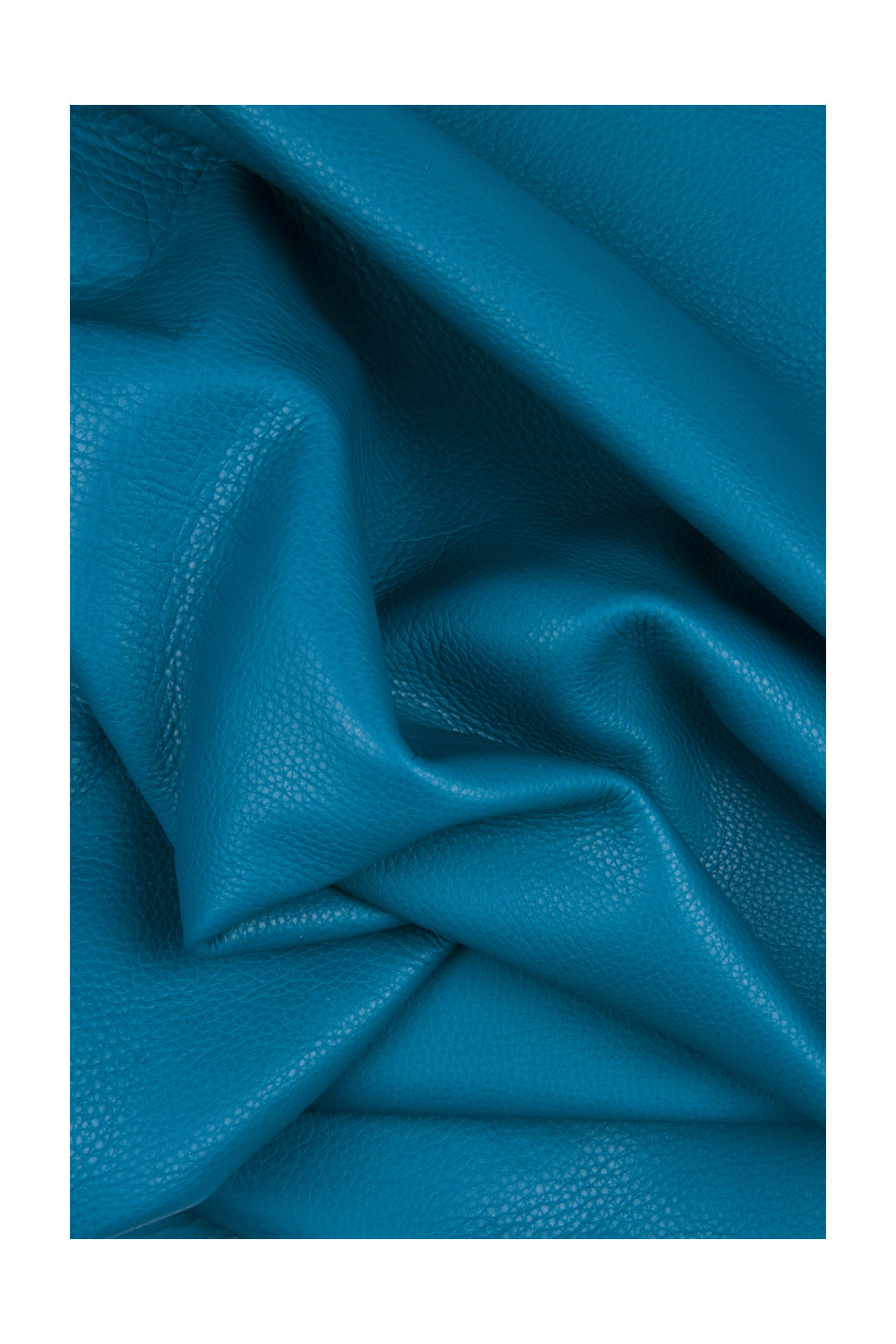Blue pebble GRAIN leather hide, deer printed sporty cowhide, petroleum blue calfskin 1.5 - 1.7 mm