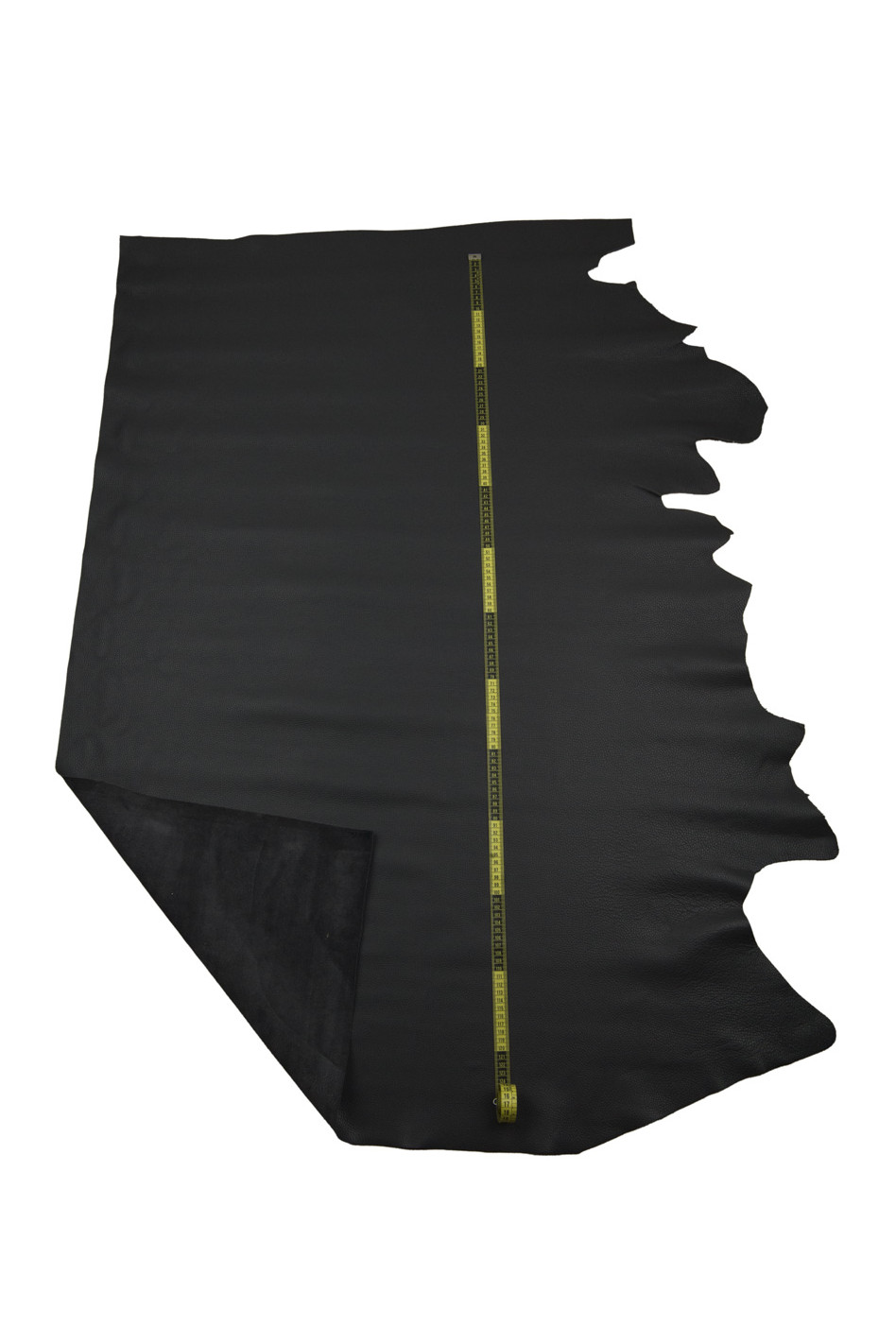 Dark grey GRAINY leather hide, pebble grain printed cowhide, soft semi glossy cafskin, 1.5 - 1.6 mm