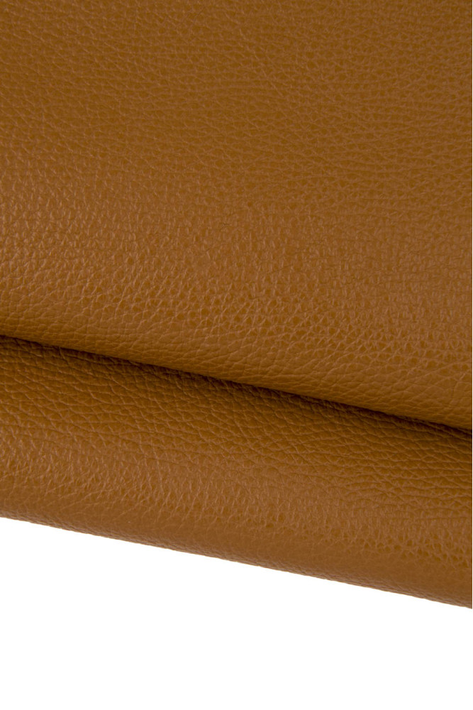 Tan PEBBLE grain printed leather hide, brown soft cowhide, semi glossy embossed calfskin