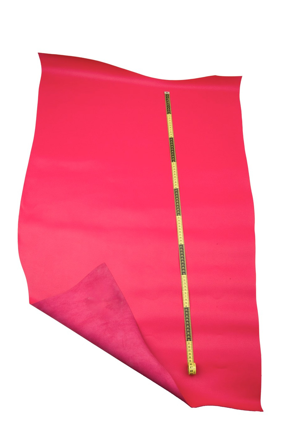 Magenta red cowhide, semi glossy leather hide with light pebble grain print, slightly stiff calfskin, 1.6 -1.8 mm