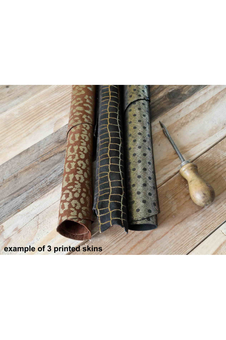 -3 printed leathers, metallic and not,