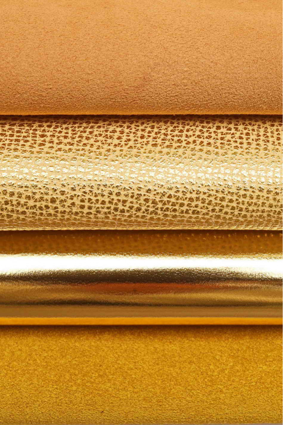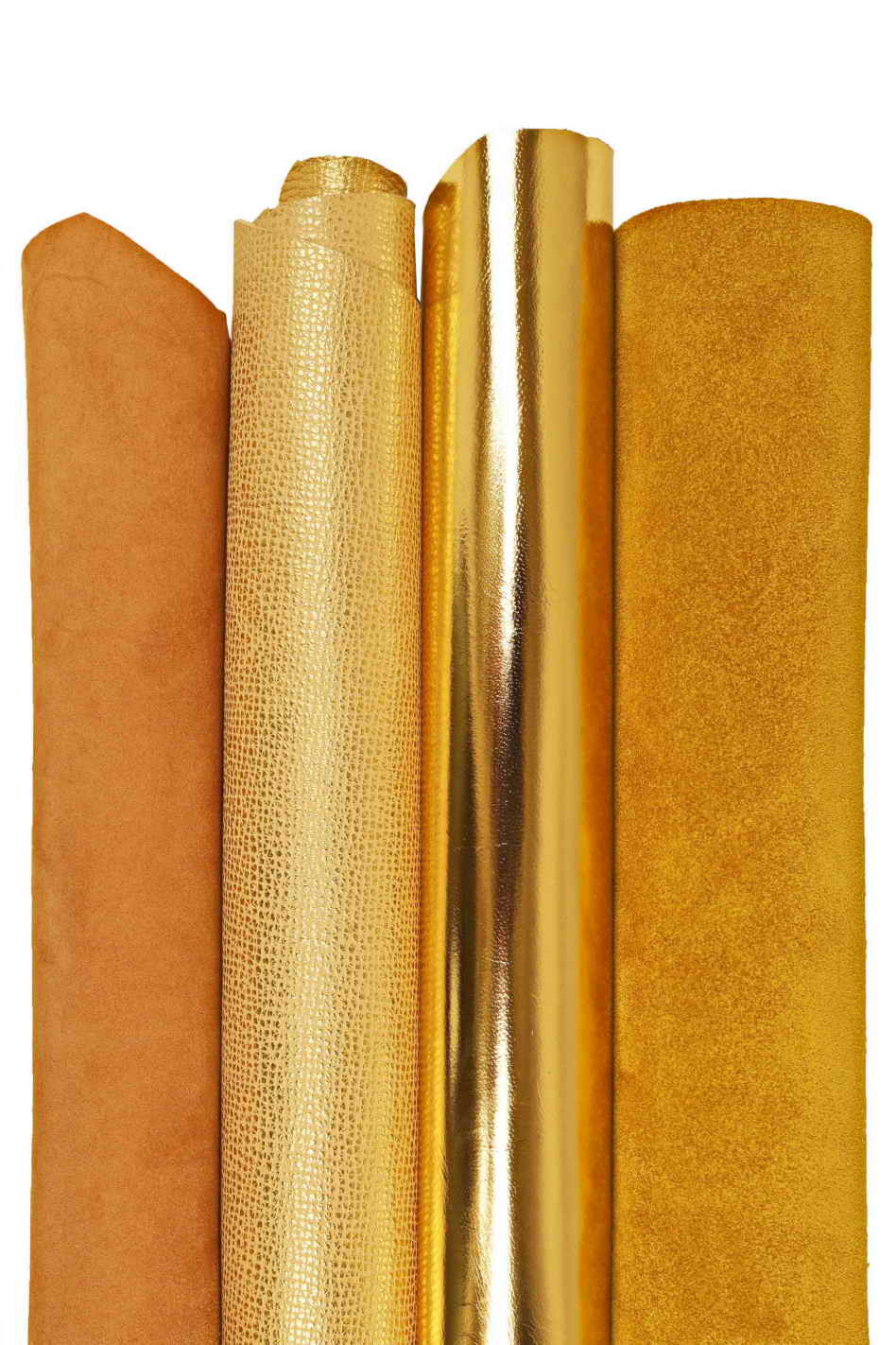 ASSORTMENT of beige yellow gold, boundle of 4 suede, metallic, printed matching goatskins as per picture