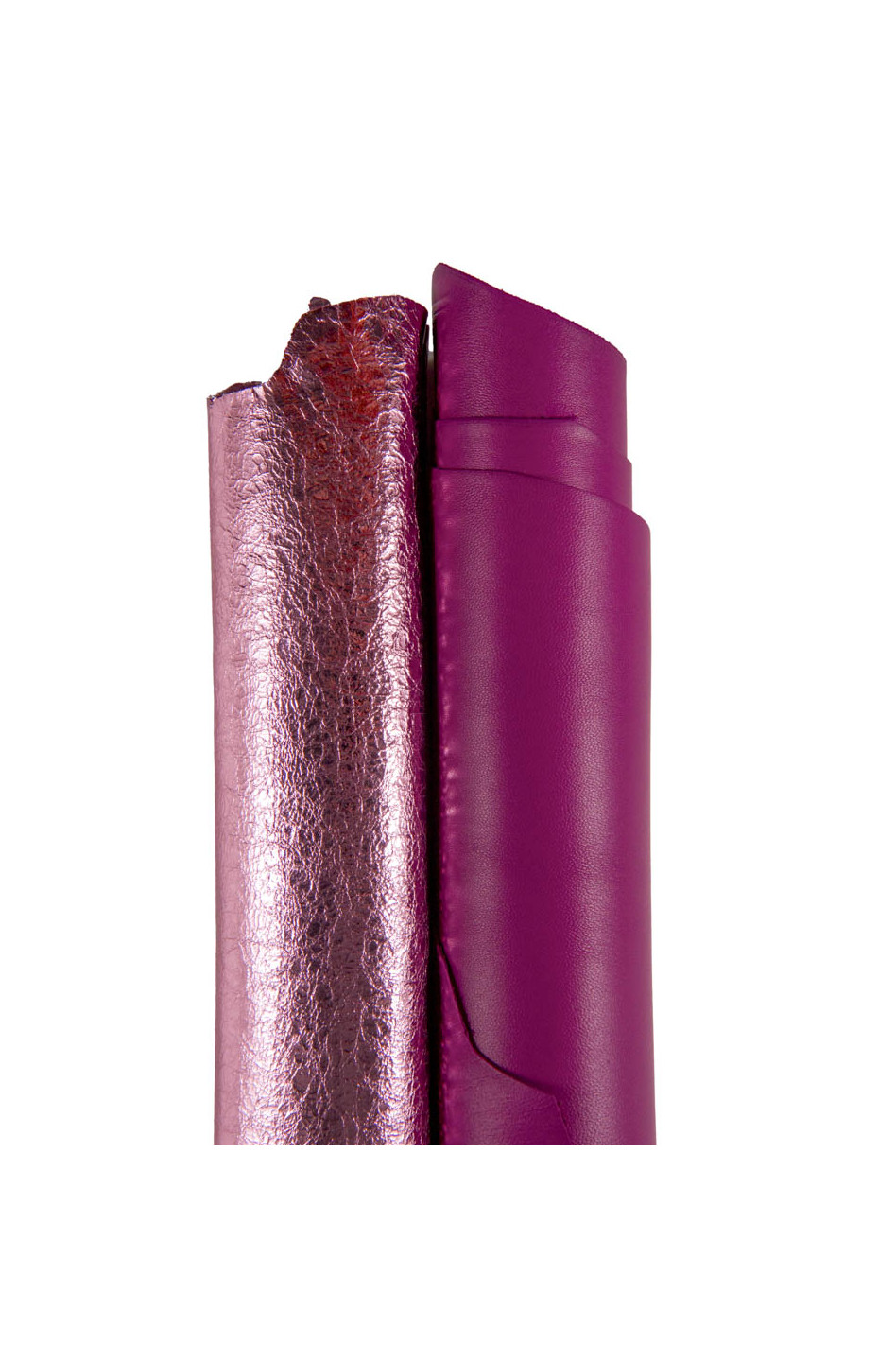 Fabulous set of 2 pink and purple plum leathers, 1 laminated and wrinkled goatskin and 1 soft lambskin nappa leather.