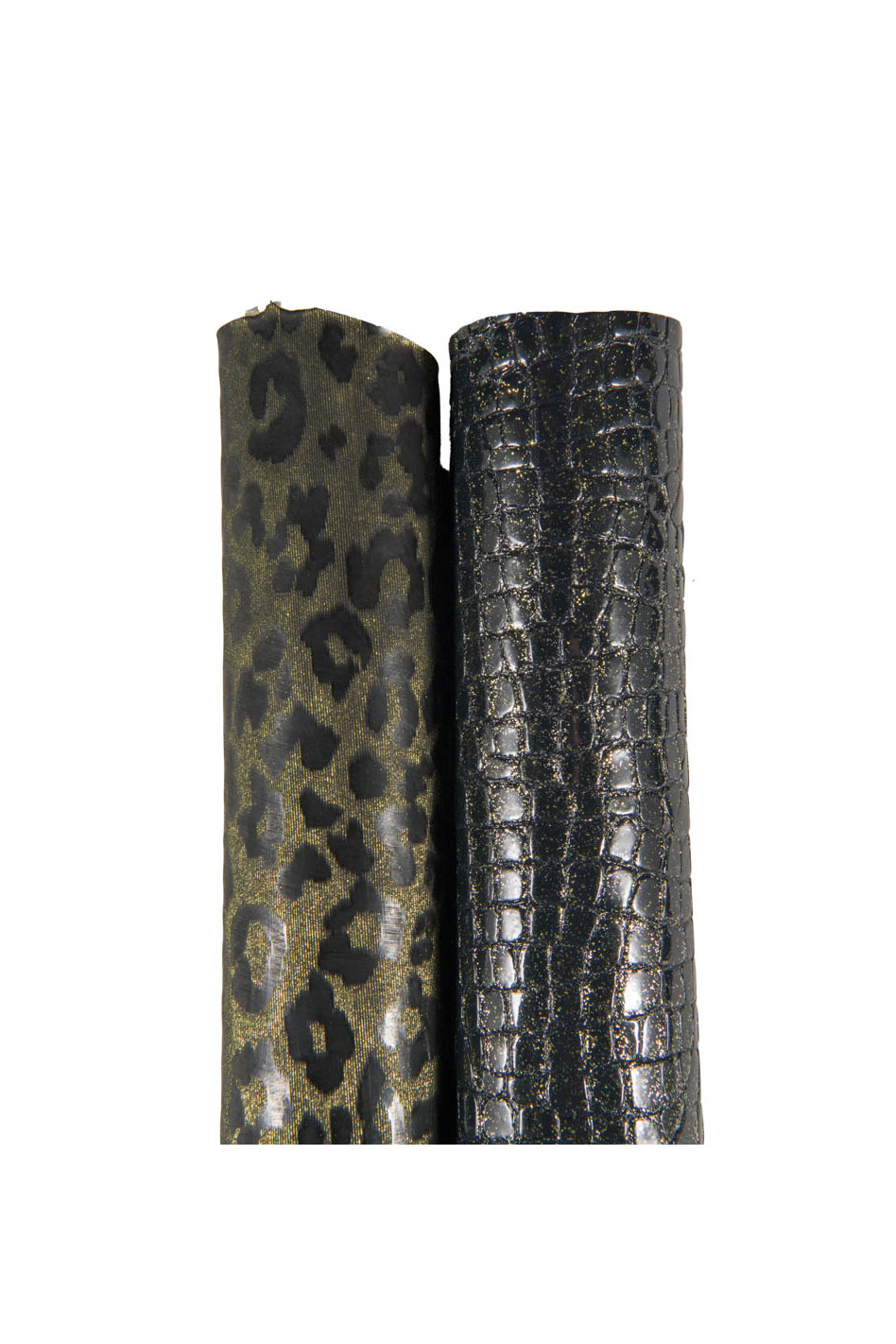 Pack of 2 BLACK gold glossy skins, set of animal printed skins, crocodile and leopard matching leathers